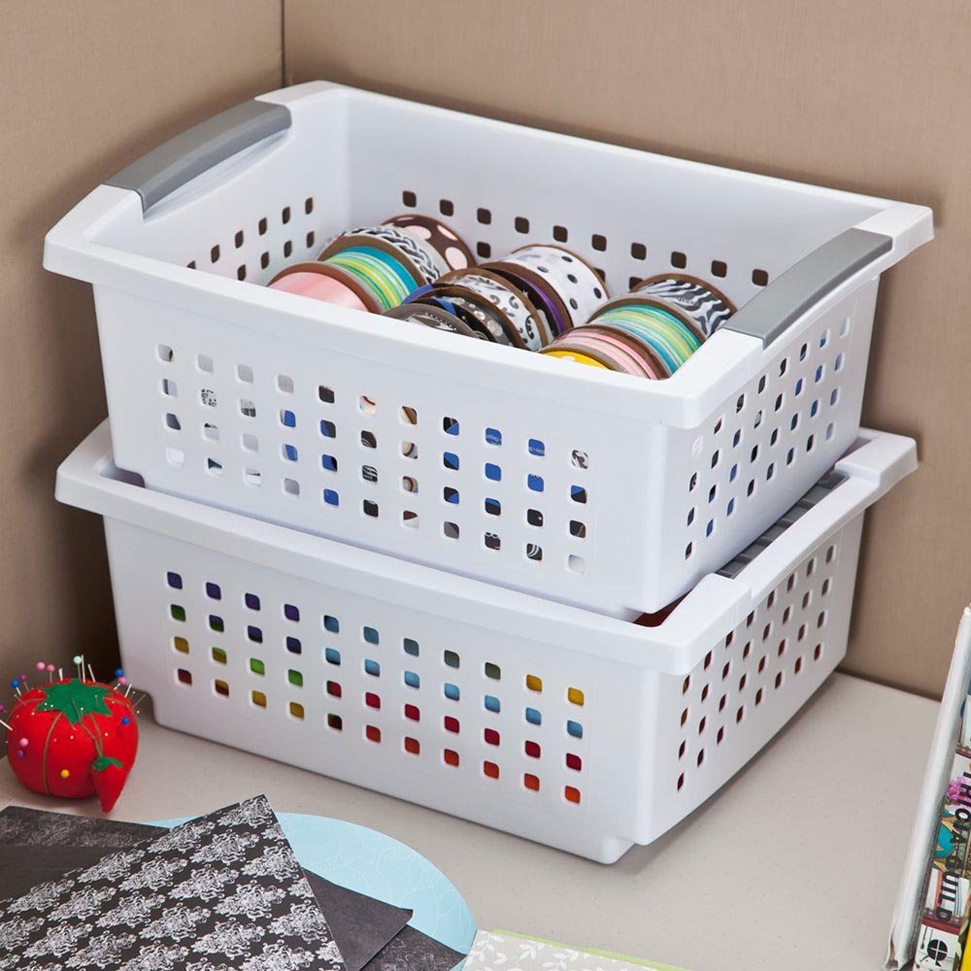 Sterilite Medium Sized Stackable Household Storage Basket. White (30 Pack)