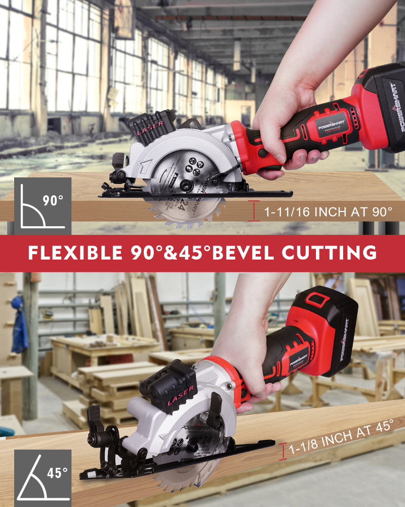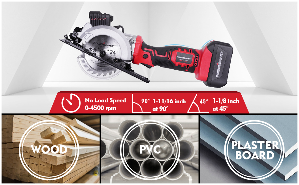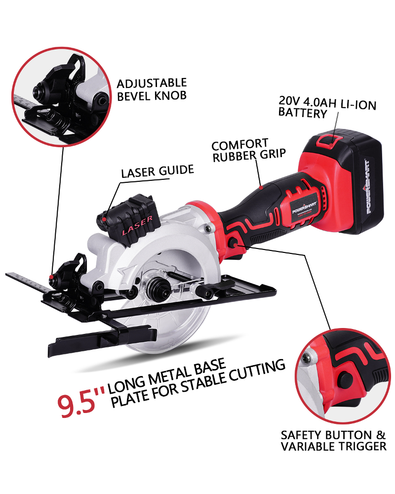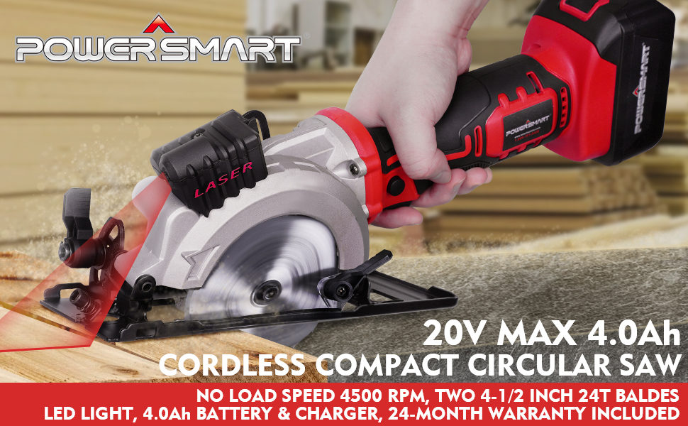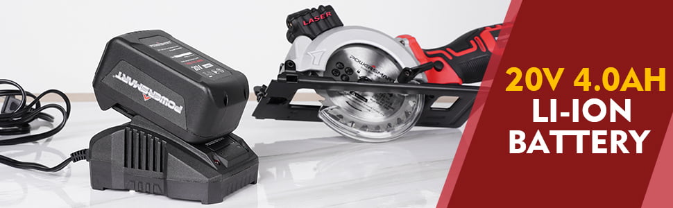 PowerSmart PS76138A 20V Cordless 4 1/2 in. Mini Circular Saw with 4.0 Ah battery and Charger