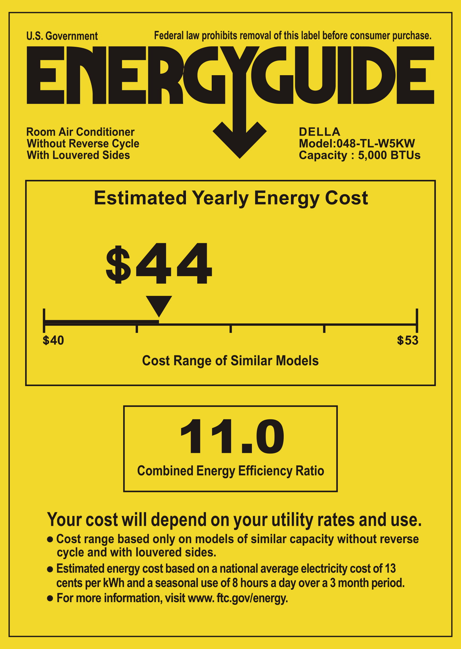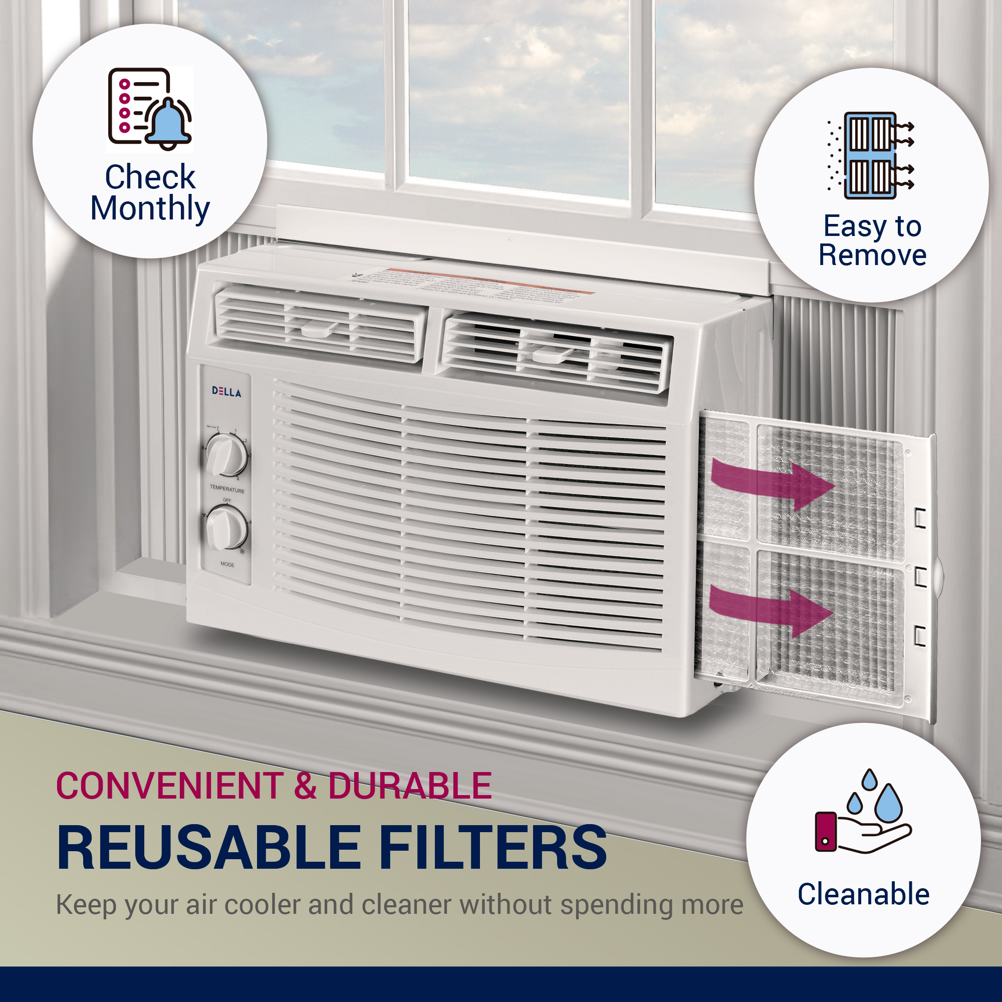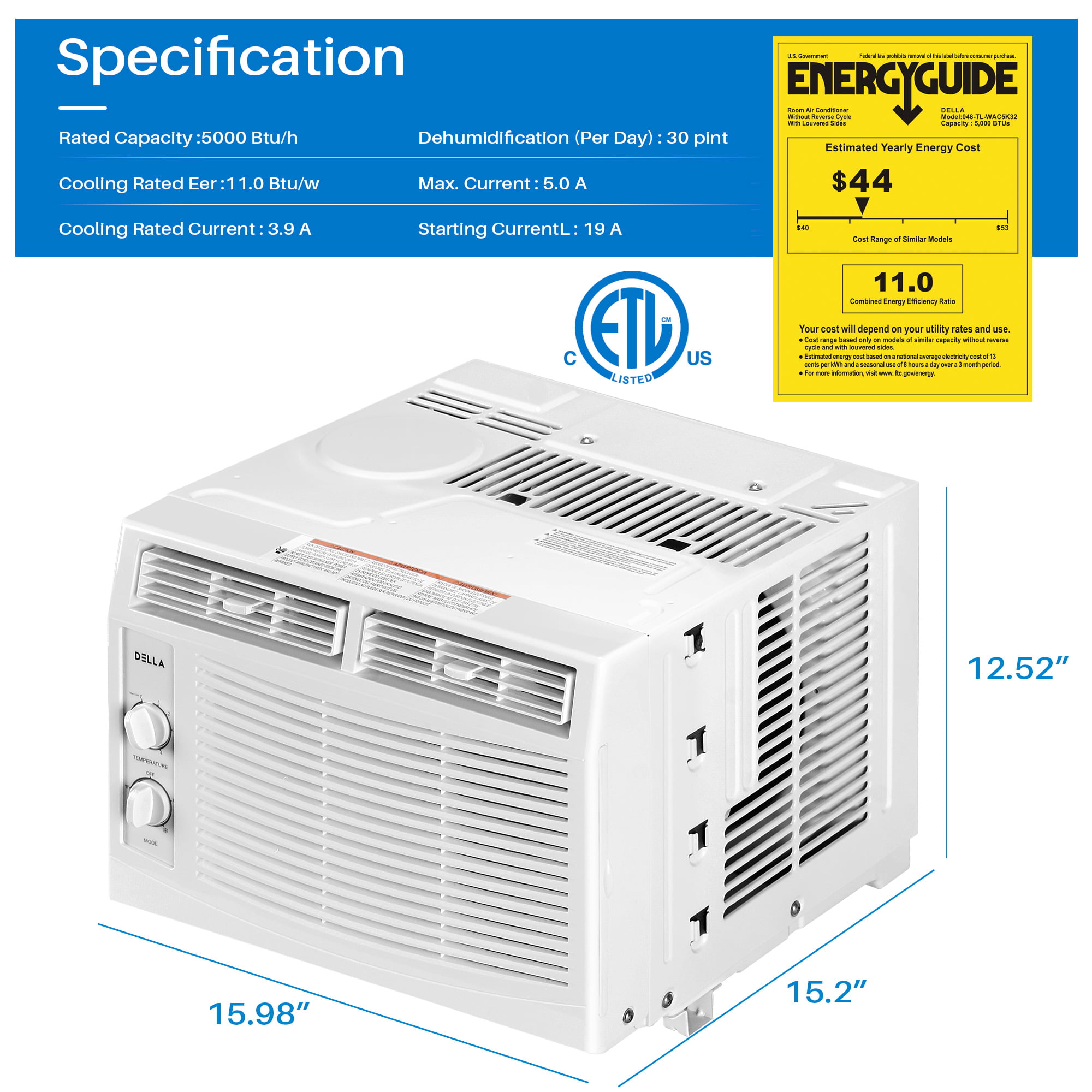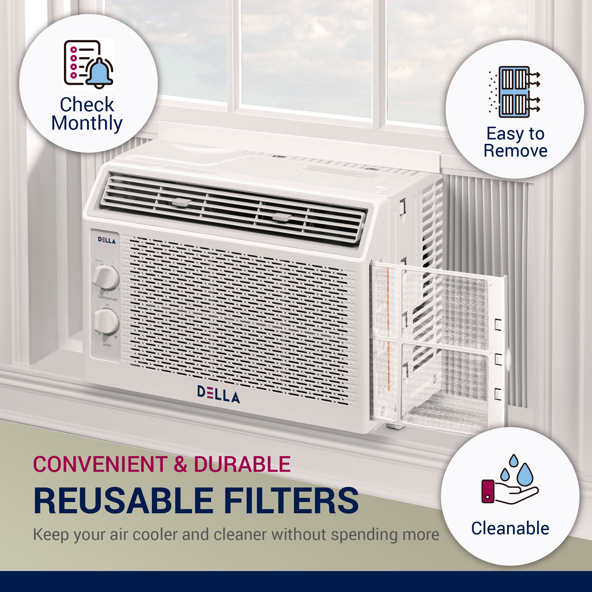 DELLA 5000 BTU 115V/60Hz Energy Saving Window Air Conditioner. Whisper Quiet AC Unit with Easy to Use Mechanical Control and Reusable Filter. Cools Up to 150 Square Feet