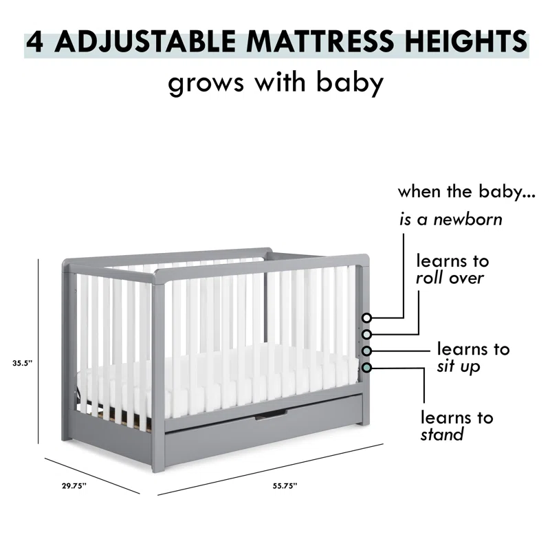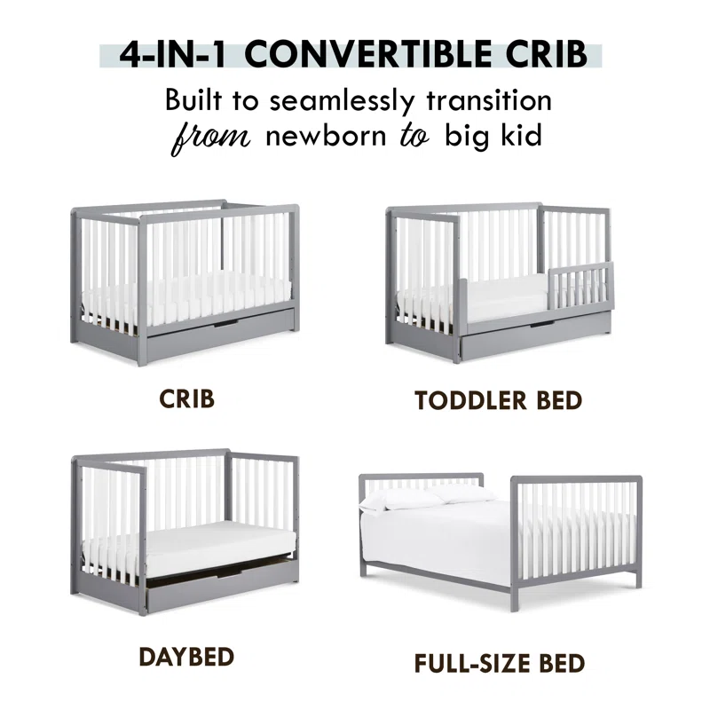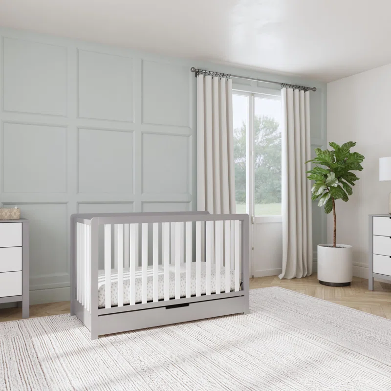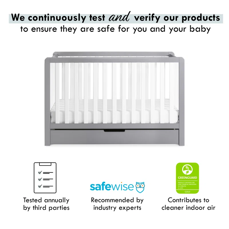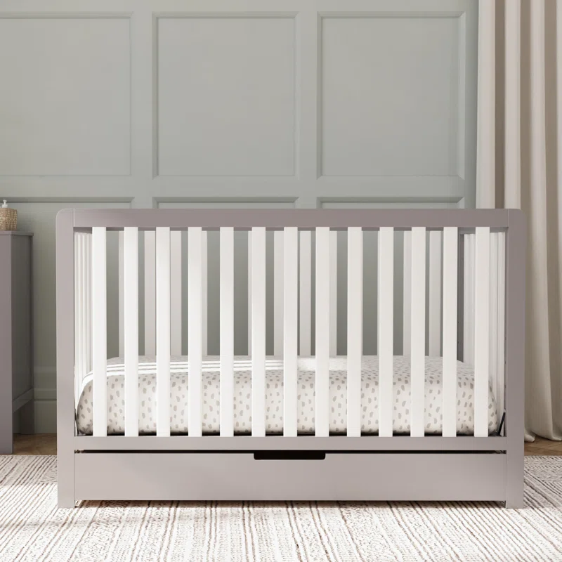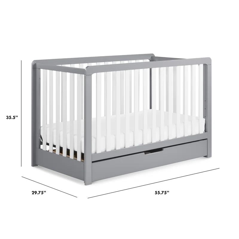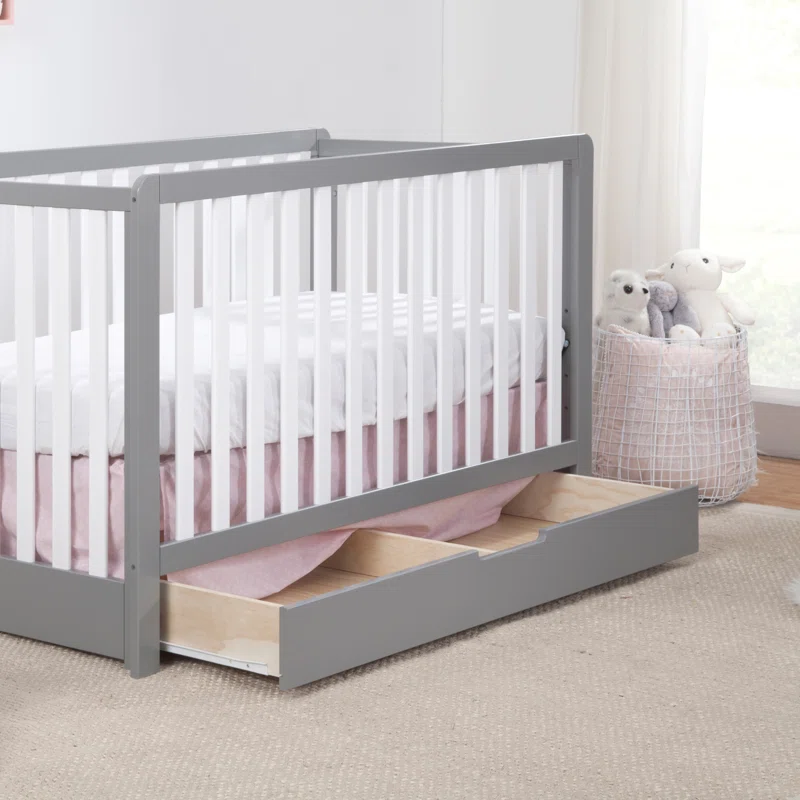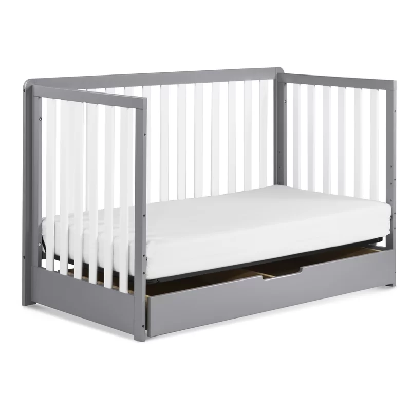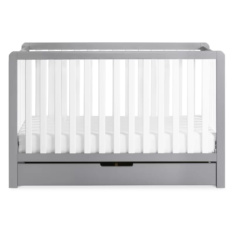 Carter-s by DaVinci Colby 4-in-1 Convertible Crib with Trundle Drawer in Grey and White. Greenguard Gold Certified. Undercrib Storage