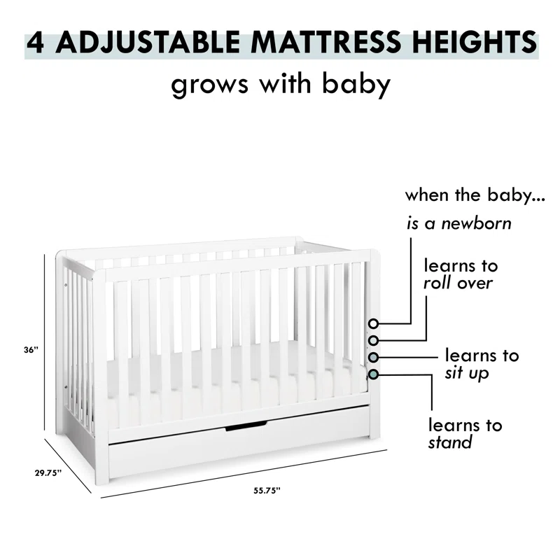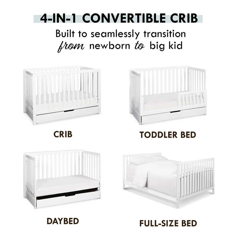 Carter-s by DaVinci Colby 4-in-1 Convertible Crib with Trundle Drawer in White. Greenguard Gold Certified. Undercrib Storage
