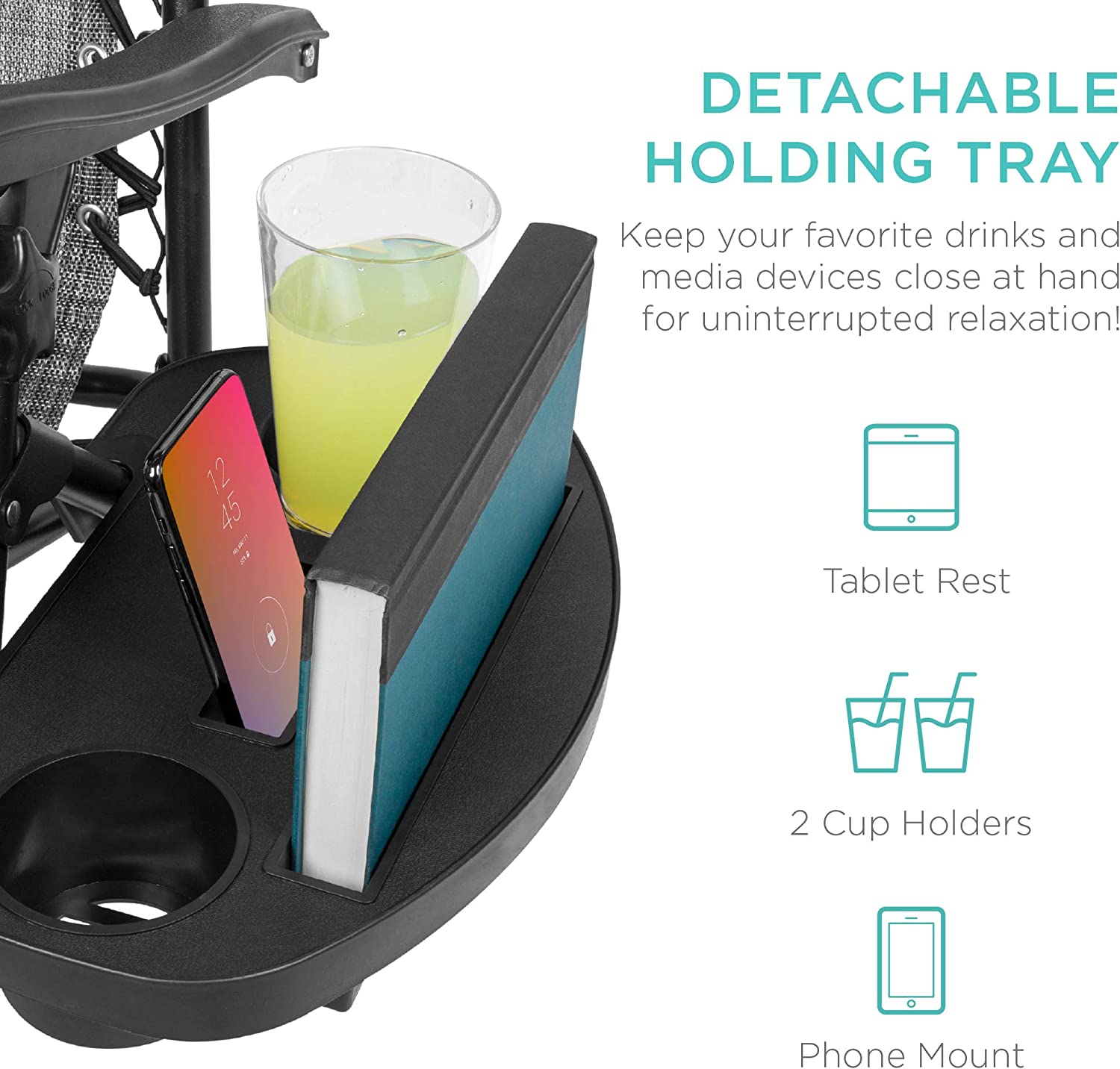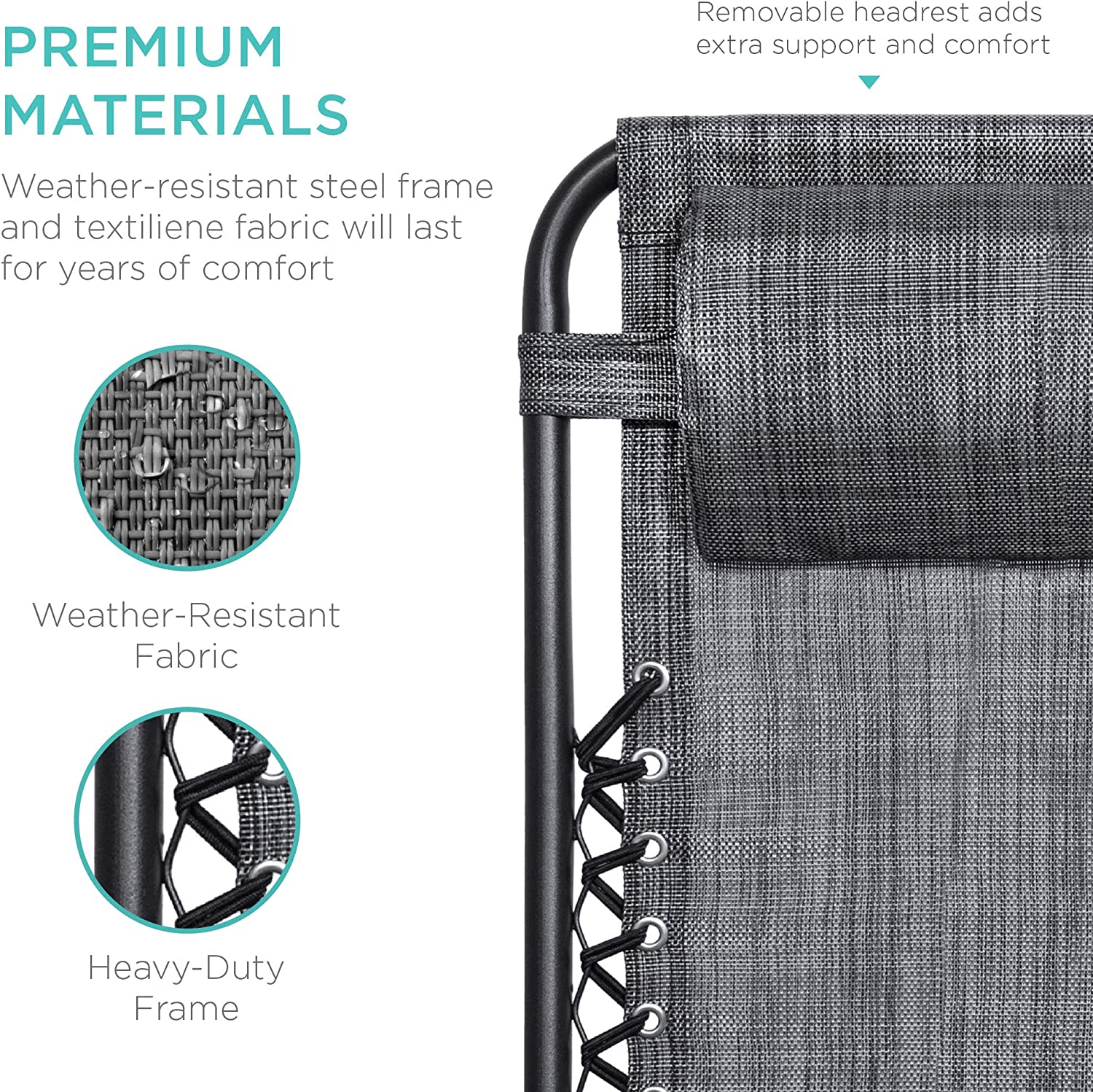 Best Choice Products Set of 2 Adjustable Steel Mesh Zero Gravity Lounge Chair Recliners w/Pillows and Cup Holder Trays. Gray