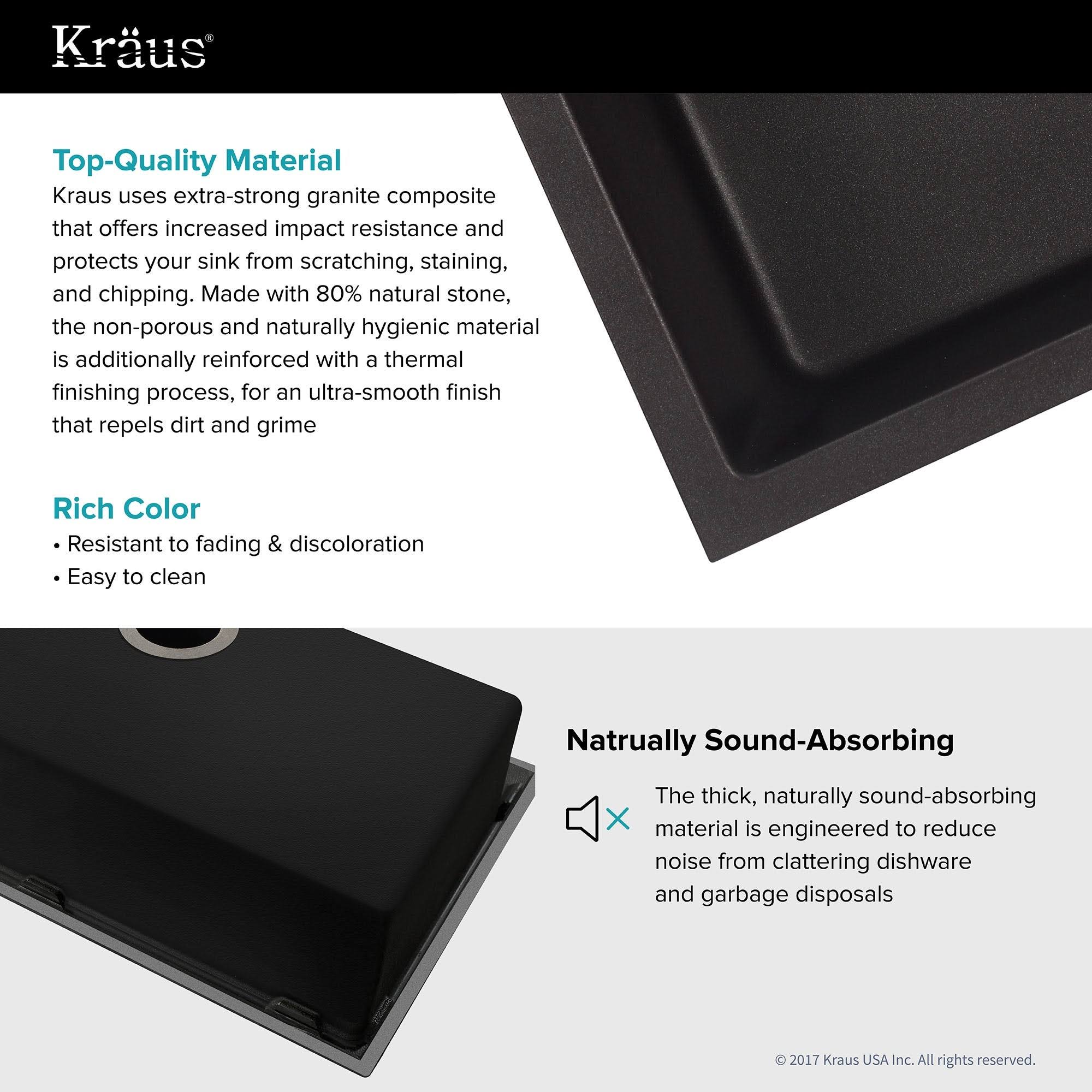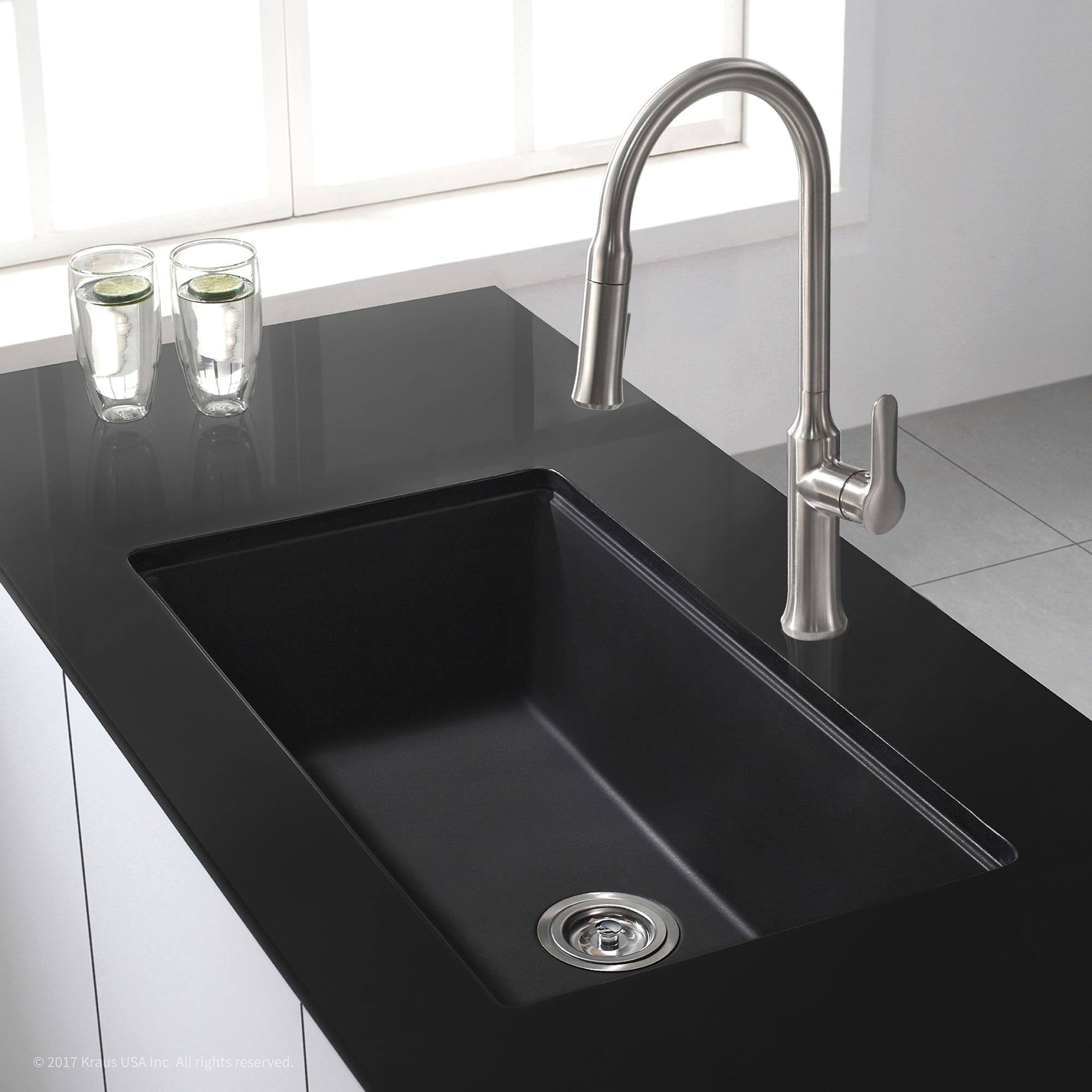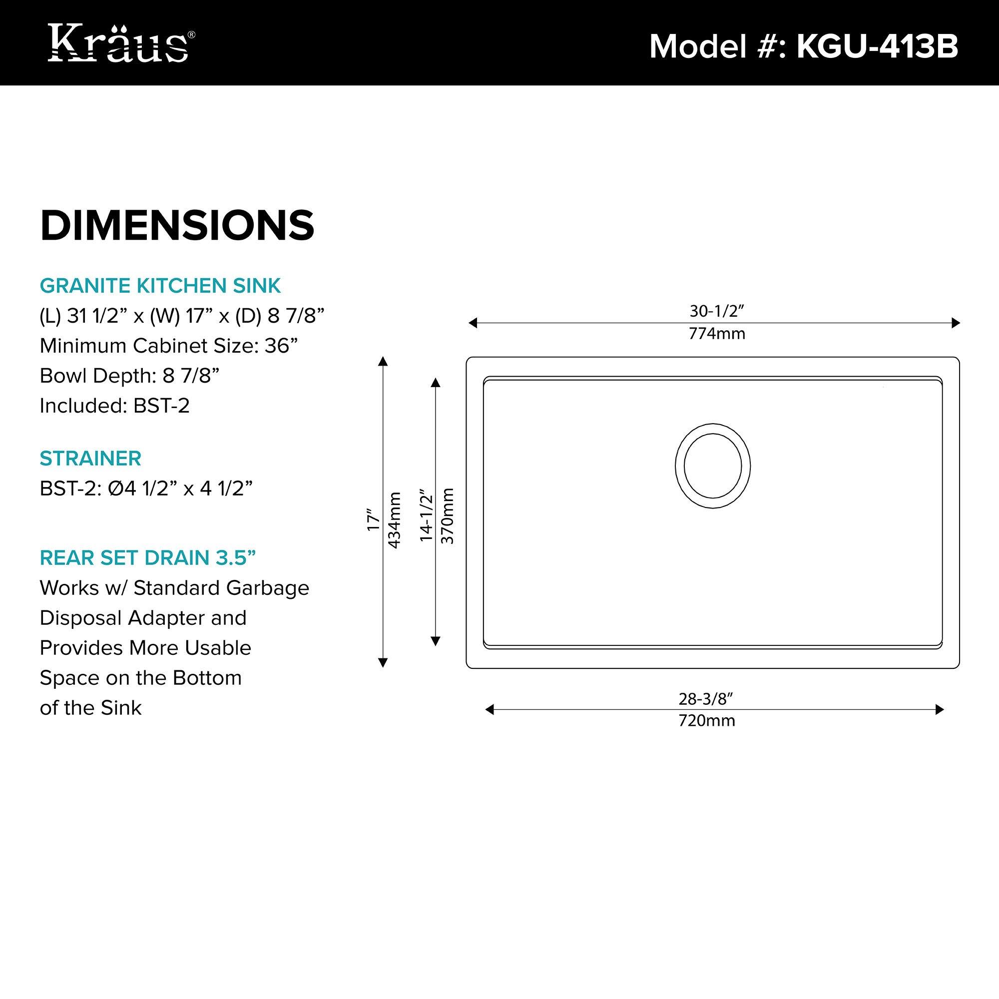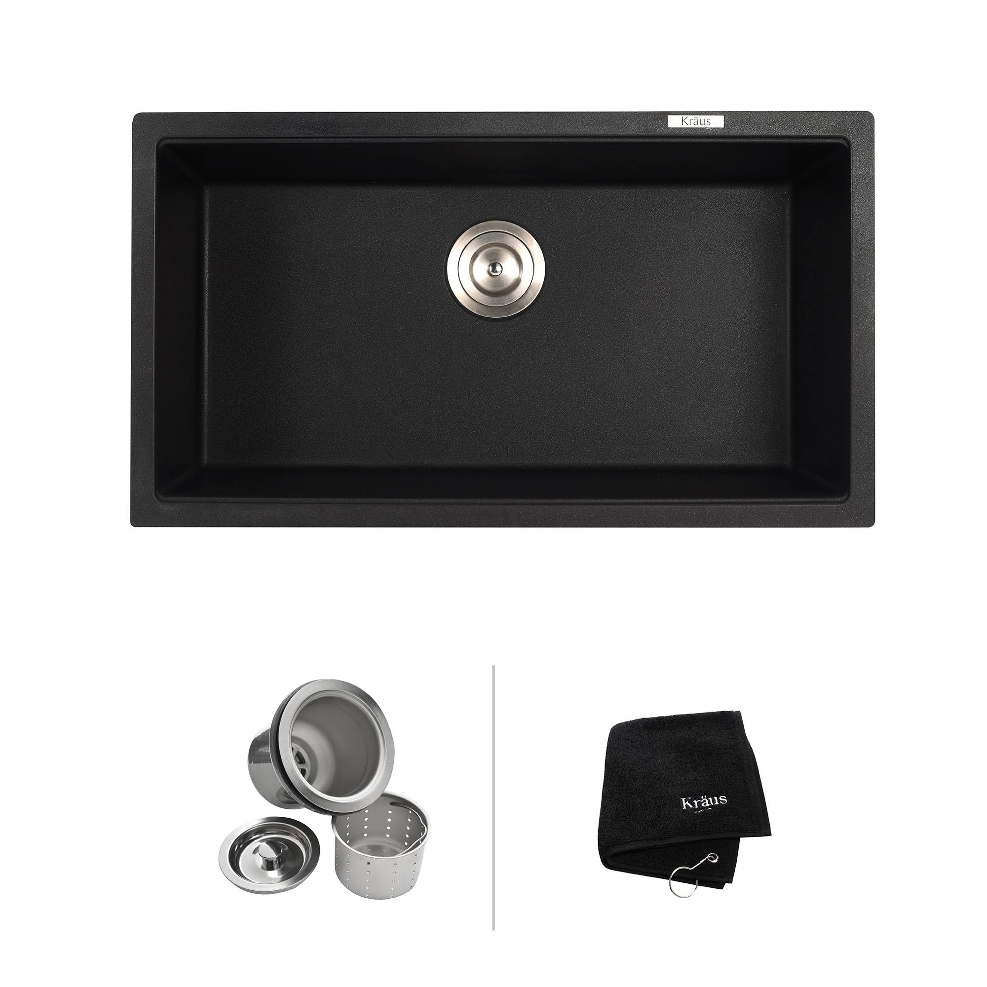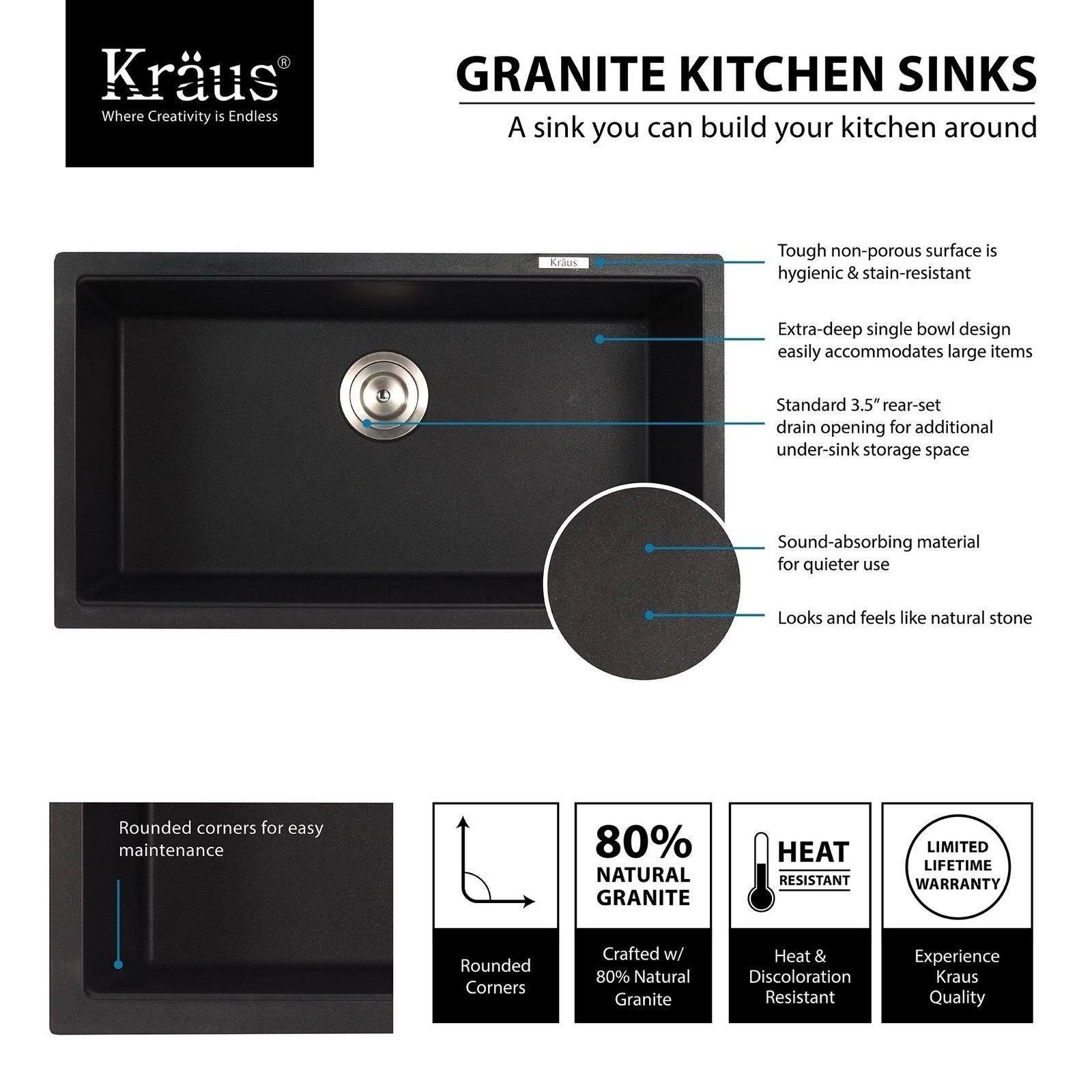 Kraus KGU-413B 31" Undermount Single Bowl Black Onyx Granite Kitchen Sink