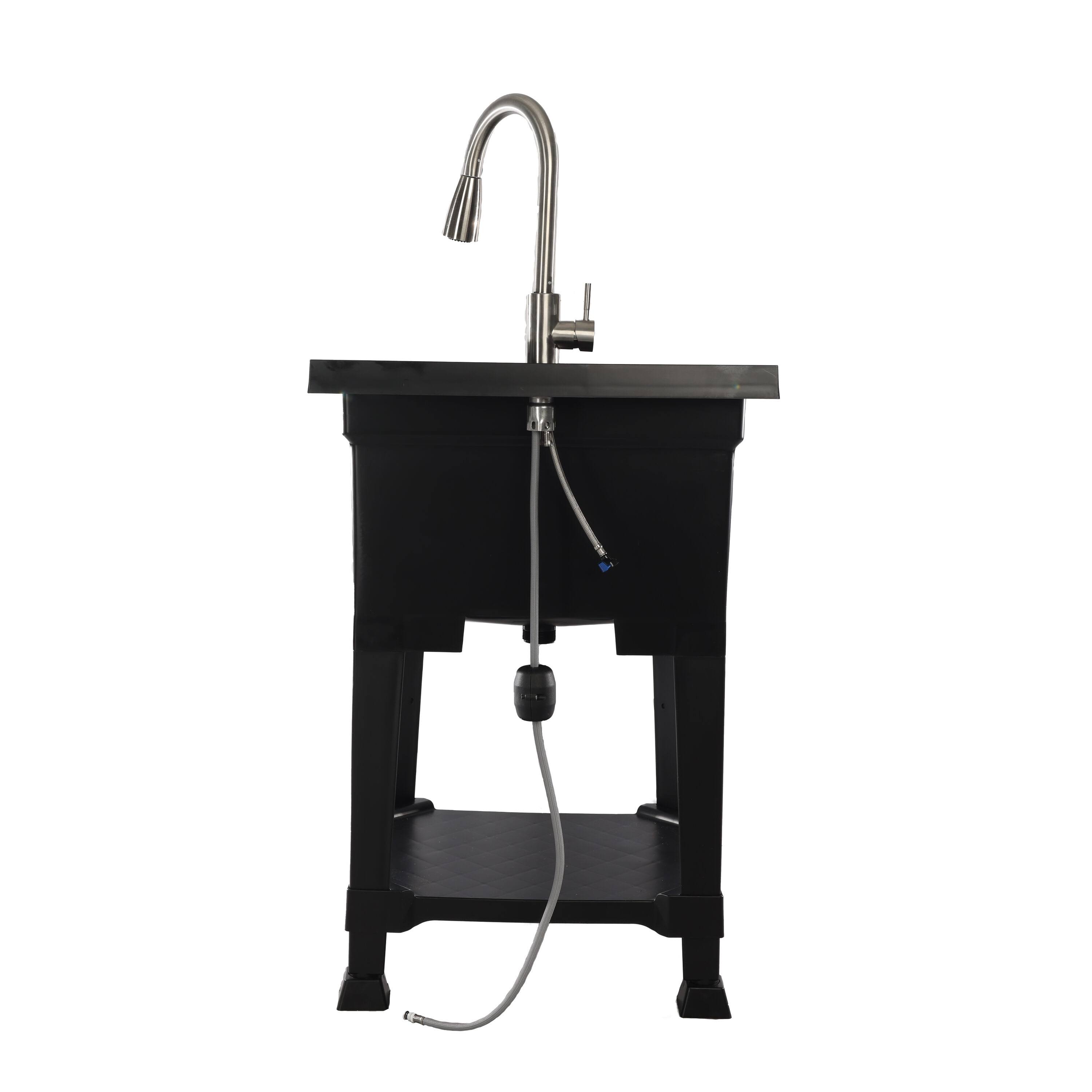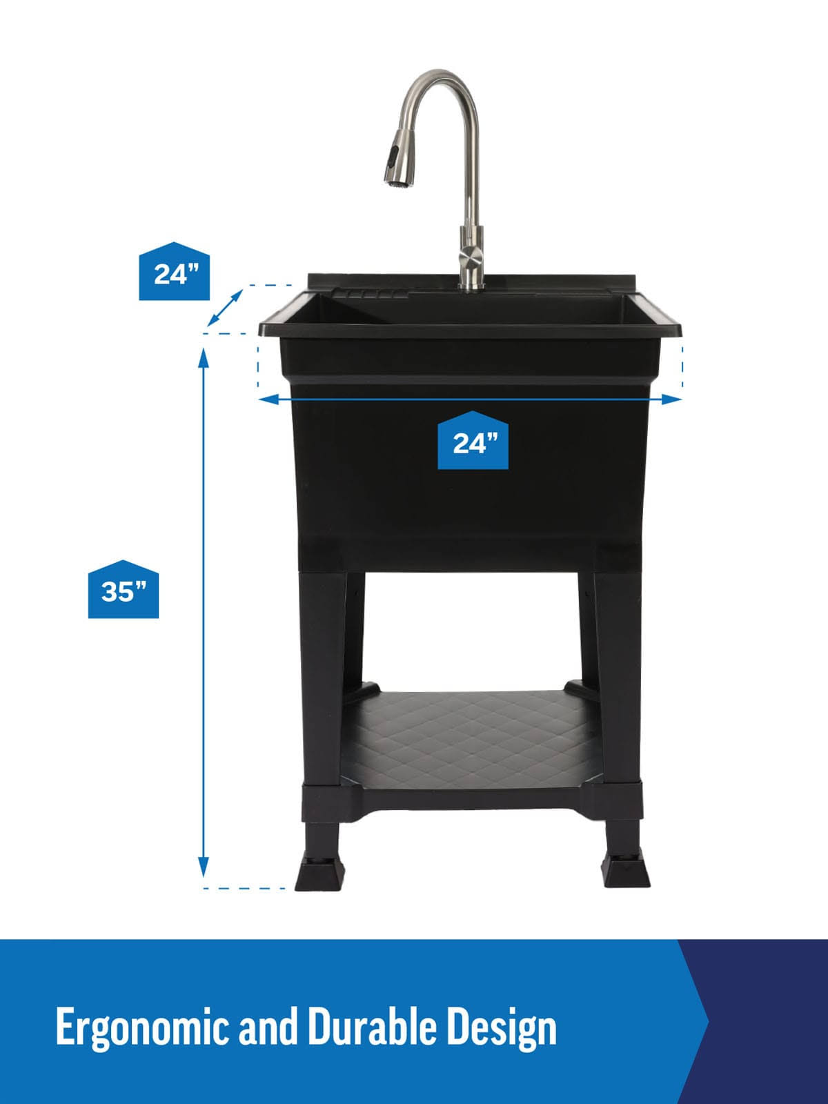Project Source 24-in x 24-in 1-Basin Black Freestanding Utility Tub with Drain with Faucet Stainless Steel | 999-LUT24BLK