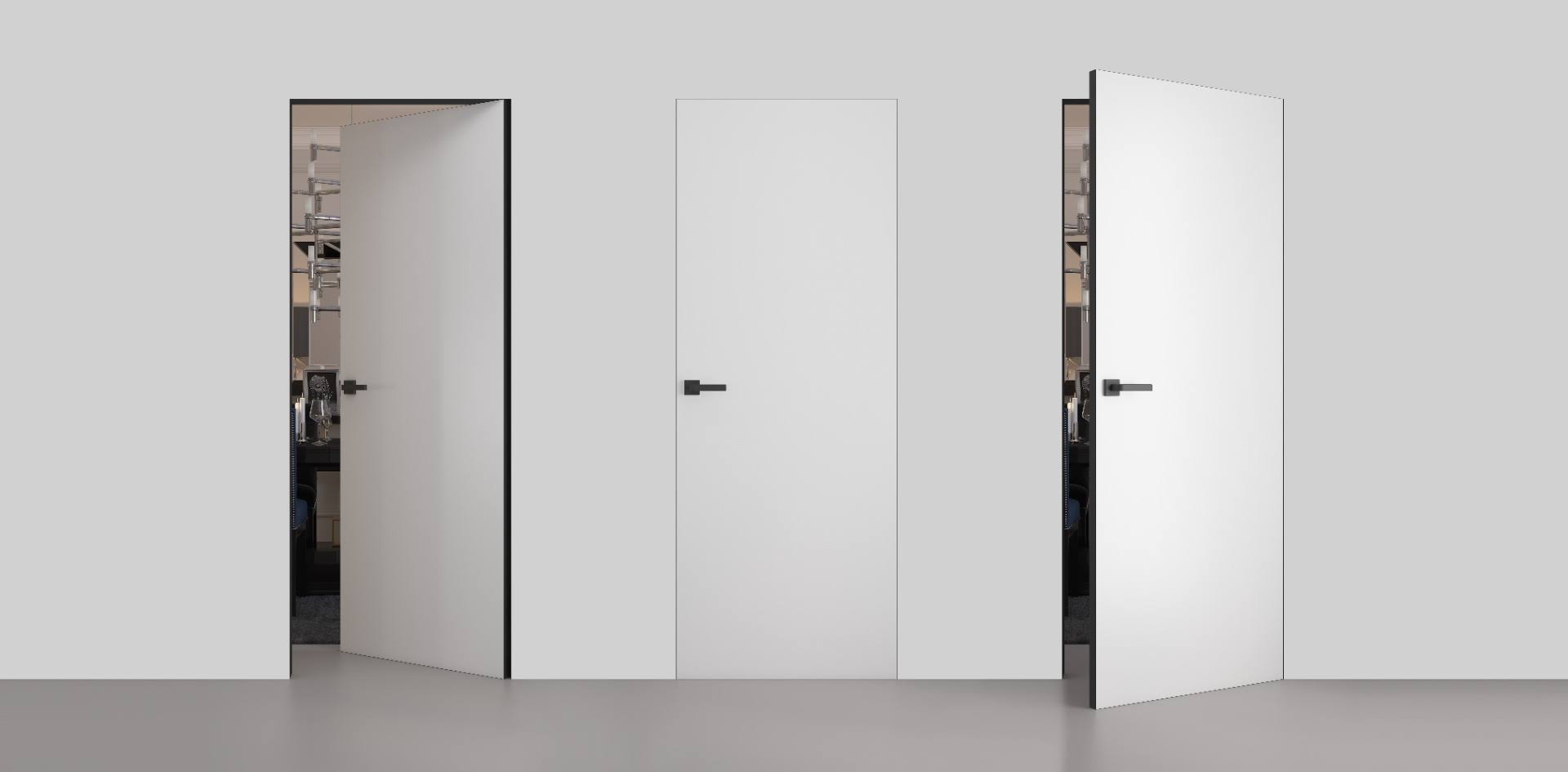 SARTODOORS Modern Solid Hidden Door with Handle | Planum 0010 Primed with Black Hidden Frame 24" x 84" Right-Hand Outswing Black Frame | Hinges Lock Handle | Mod