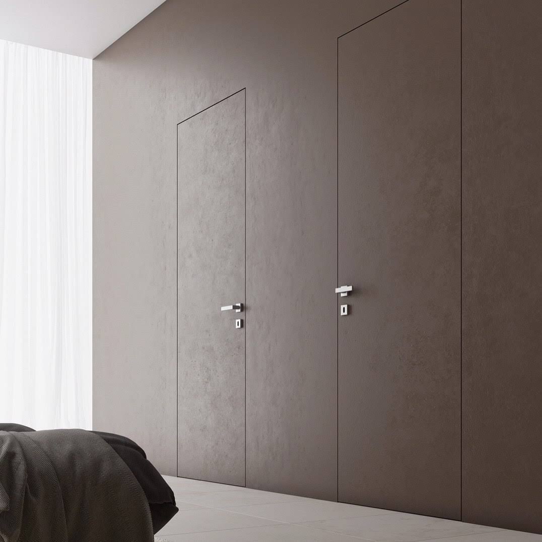 SARTODOORS Modern Solid Hidden Door with Handle | Planum 0010 Primed with Silver Hidden Frame 24" x 84" Left-Hand Inswing Silver Frame | Hinges Lock Handle | Mod