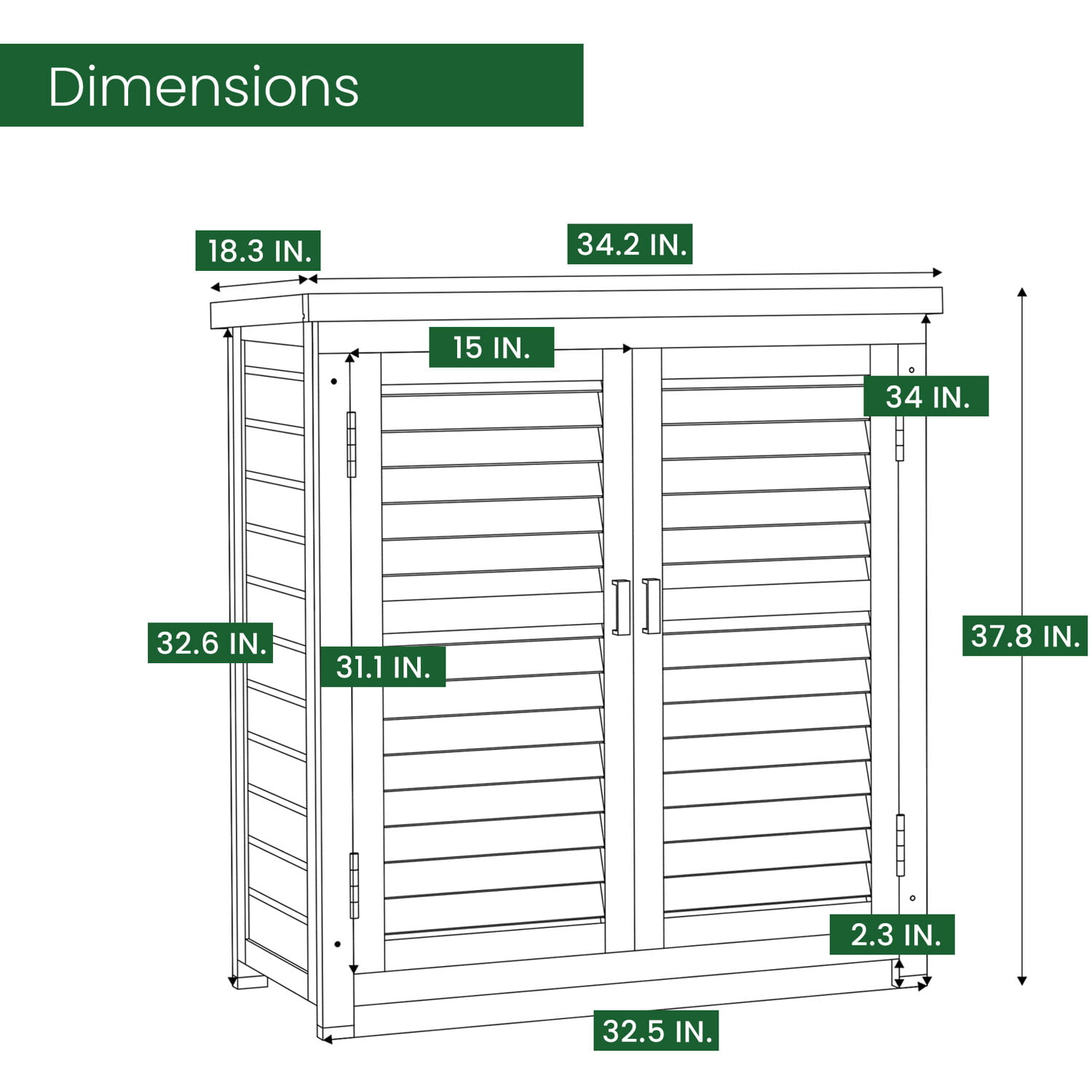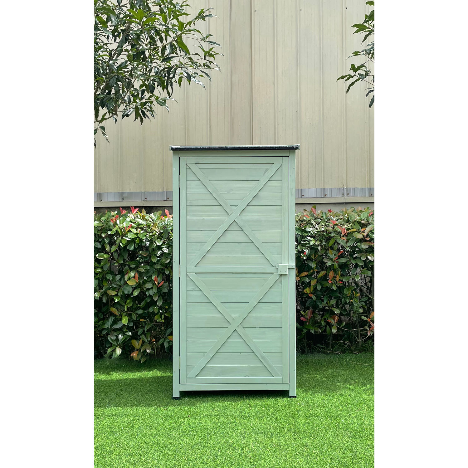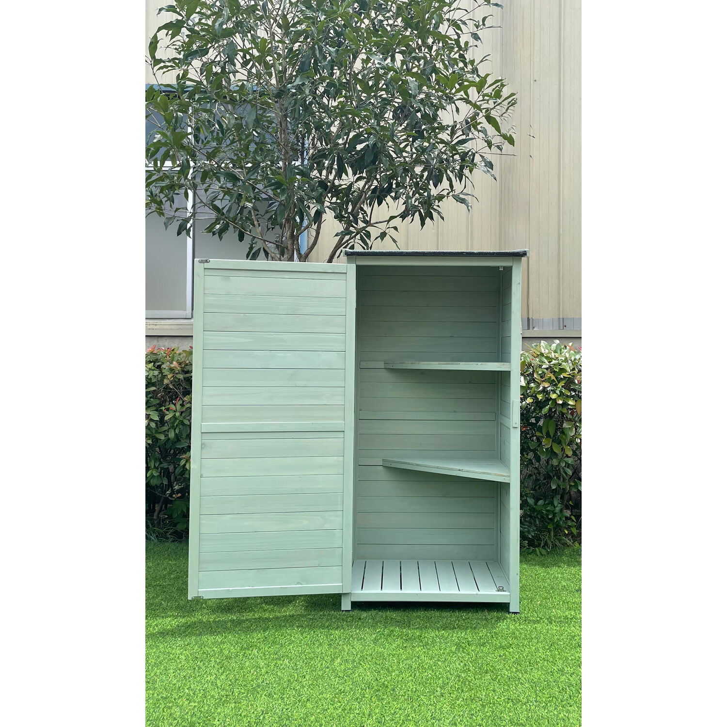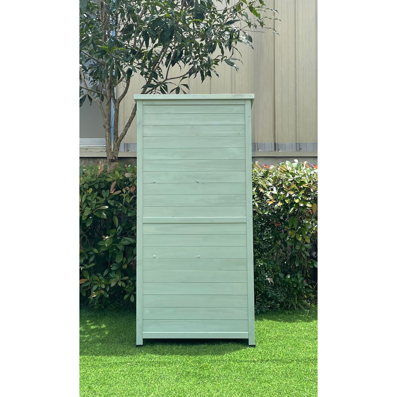 Hanover Outdoor Vertical Wood Storage Shed with Shelves | Backyard Utility Storage Unit for Organizing Garden Supplies. Patio Accessories & Tools | Green