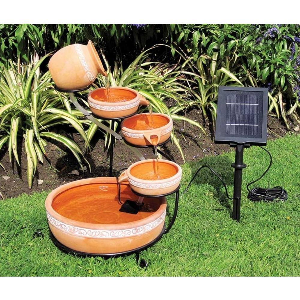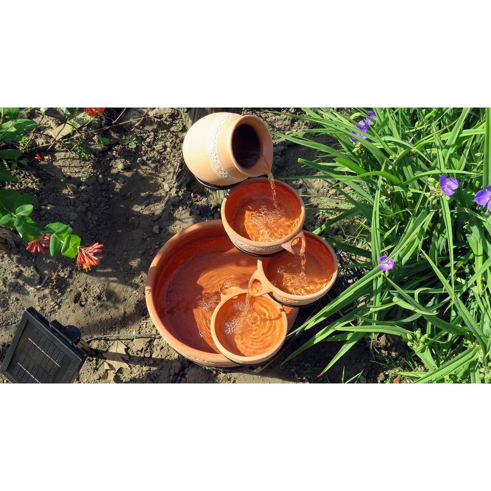 Koolatron CSFK-5 Koolscapes Solar-Powered 5-Tier Cascading Fountain. Terracotta Clay. Self-Contained Water Feature