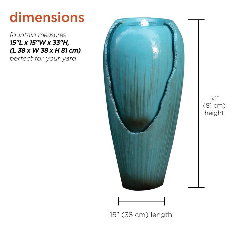 Alpine Corporation DIG100XS 33 in. Tall Water Jar Fountain with LED Light. Turquoise