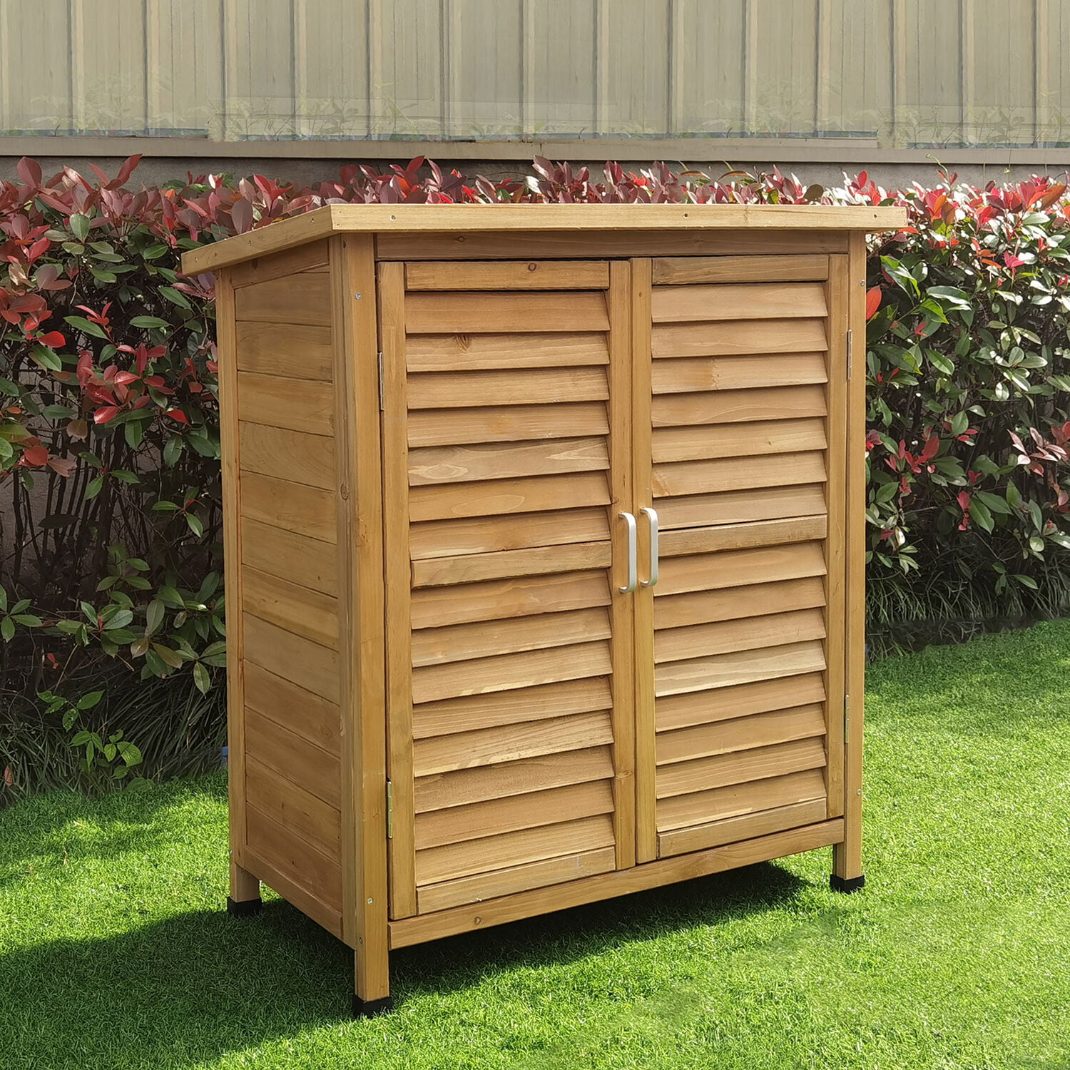 Hanover Outdoor 2 ft. 8in. x 3 ft. 2in. Wooden Storage Shed for Tools. Equipment. Garden Supplies. with Shelf. Waterproof Roof - HANWS0106-NAT