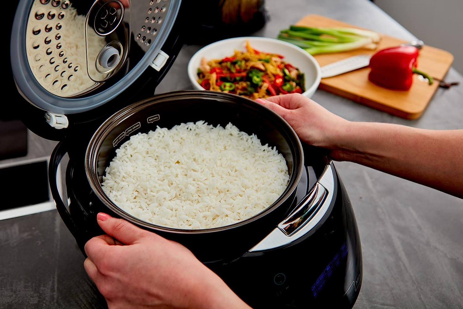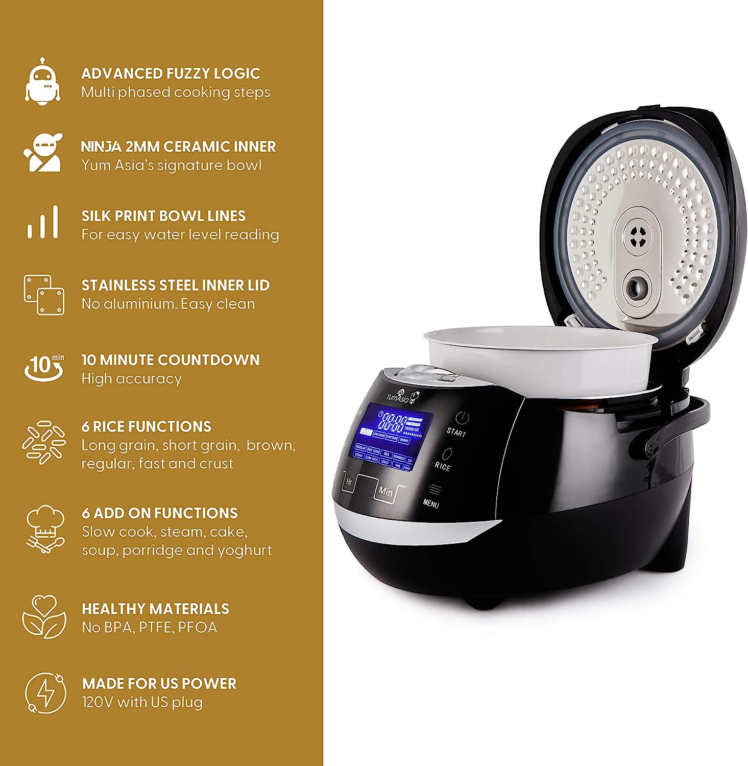 Yum Asia Sakura Rice Cooker with Ceramic Bowl and Advanced Fuzzy Logic (8 Cup. 1.5 Litre) 6 Rice Cook Functions. 6 Multicook Functions. Motouch LED Display. 120V Power (Black and Silver)