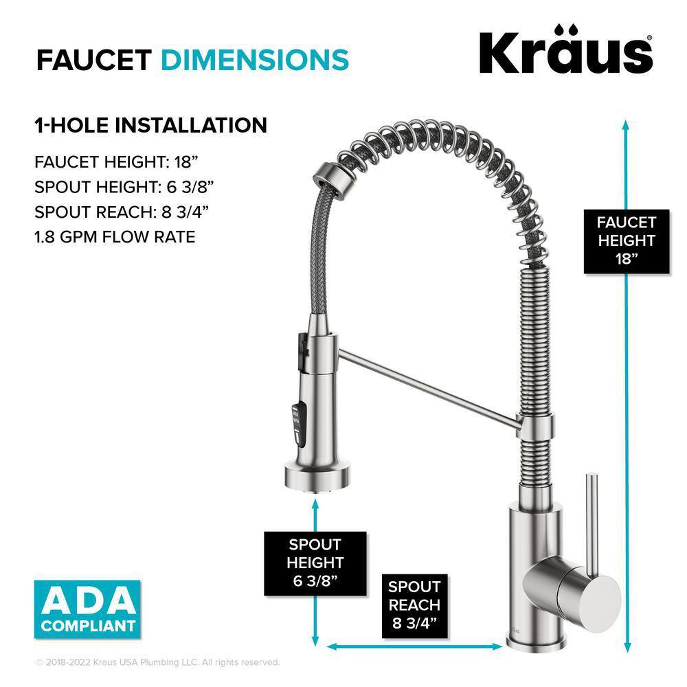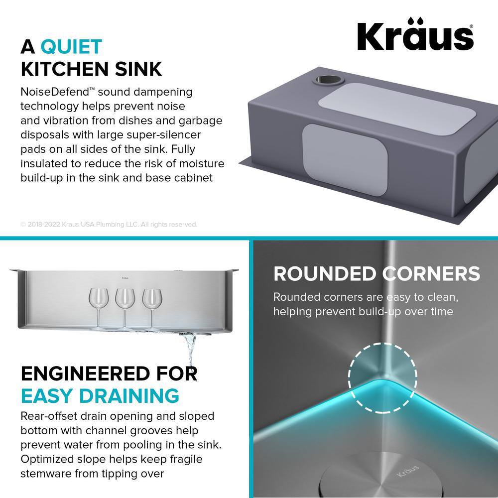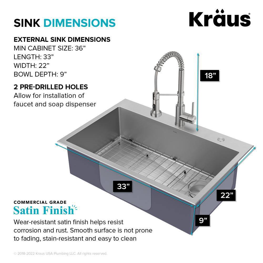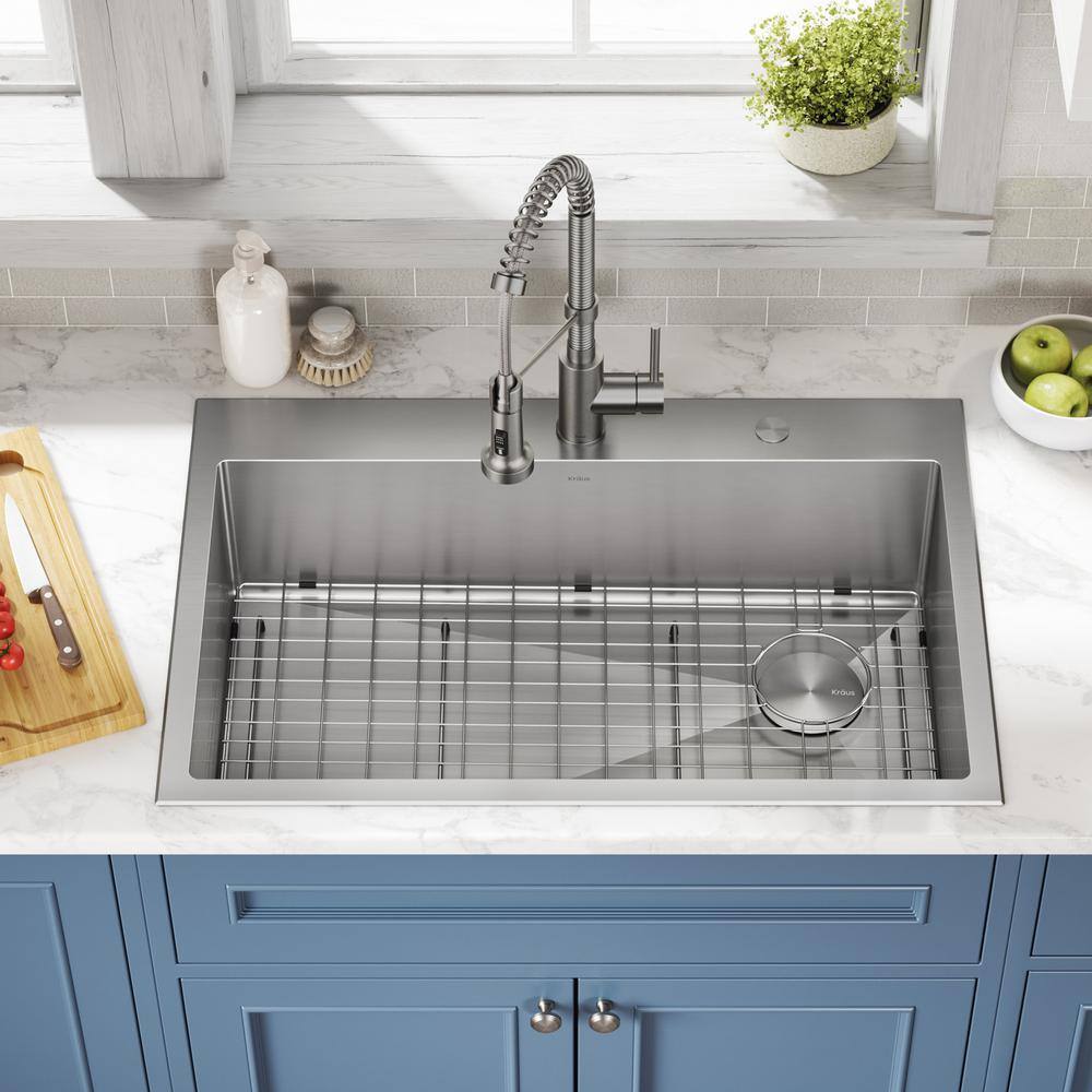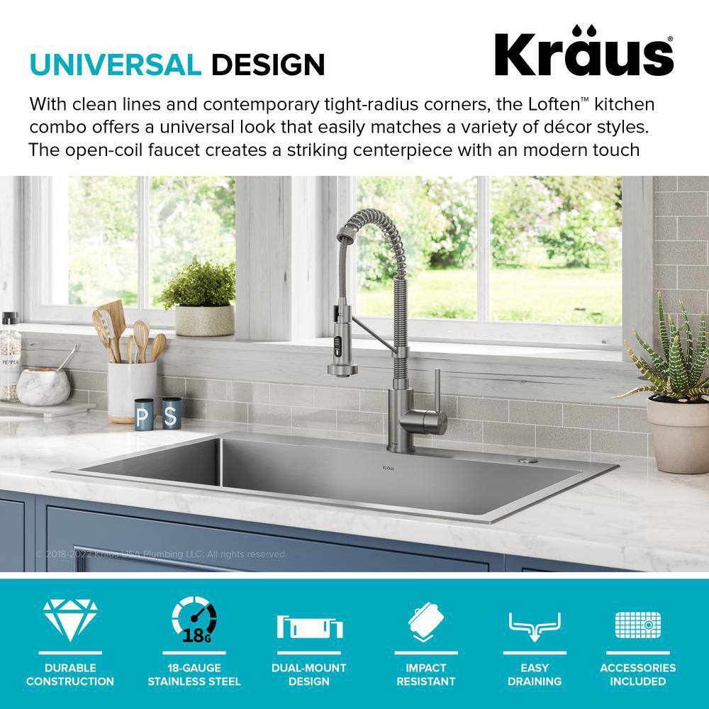 KRAUS KCH-1000 Loften All in-One 33 in. Drop In/Undermount Single Bowl 18 Gauge Stainless Steel Kitchen Sink with Pull Down Faucet