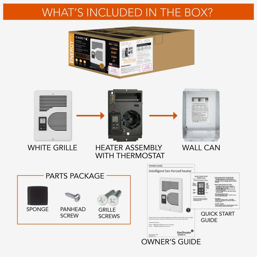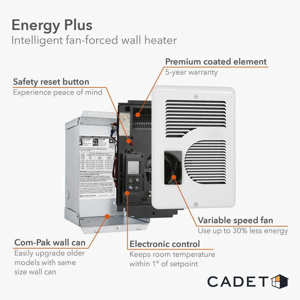 Cadet CEC163TW 240/208/120-volt 1.600/1.500/1.000-watt Energy Plus In-wall Fan-forced Electric Heater in White with Digital Thermostat