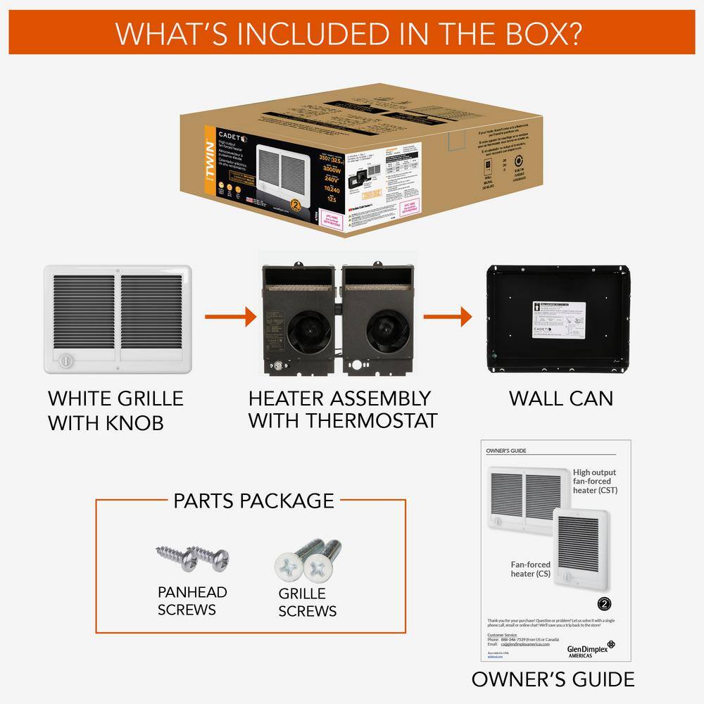 Cadet CSTC302TW 240/208-volt 3.000/2.250-watt Com-Pak Twin In-Wall Fan-forced Electric Heater in White with Thermostat