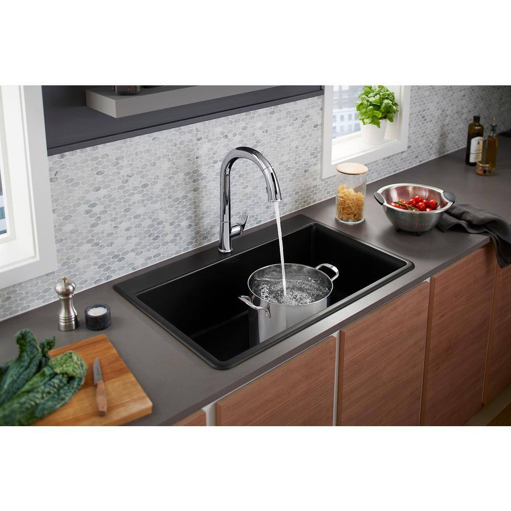 KOHLER RH8437-1-CM1 Kennon 33 in. 1- Hole Undermount Single Bowl Granite Composite Kitchen Sink in Matte Black