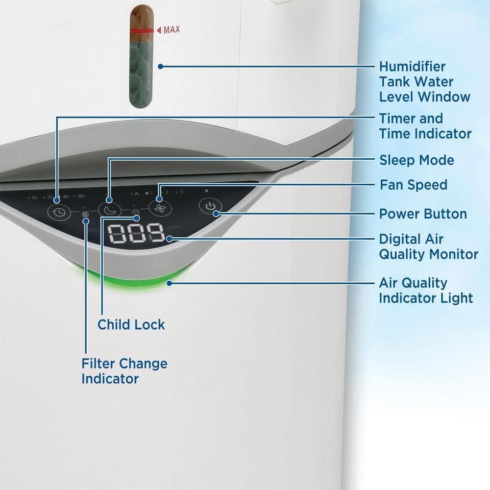 GermGuardian APH406W 2-in-1 Air Purifier and Humidifier All Season Console with HEPA Filter and Humidifier for Large Rooms Up to 384 sq. ft.