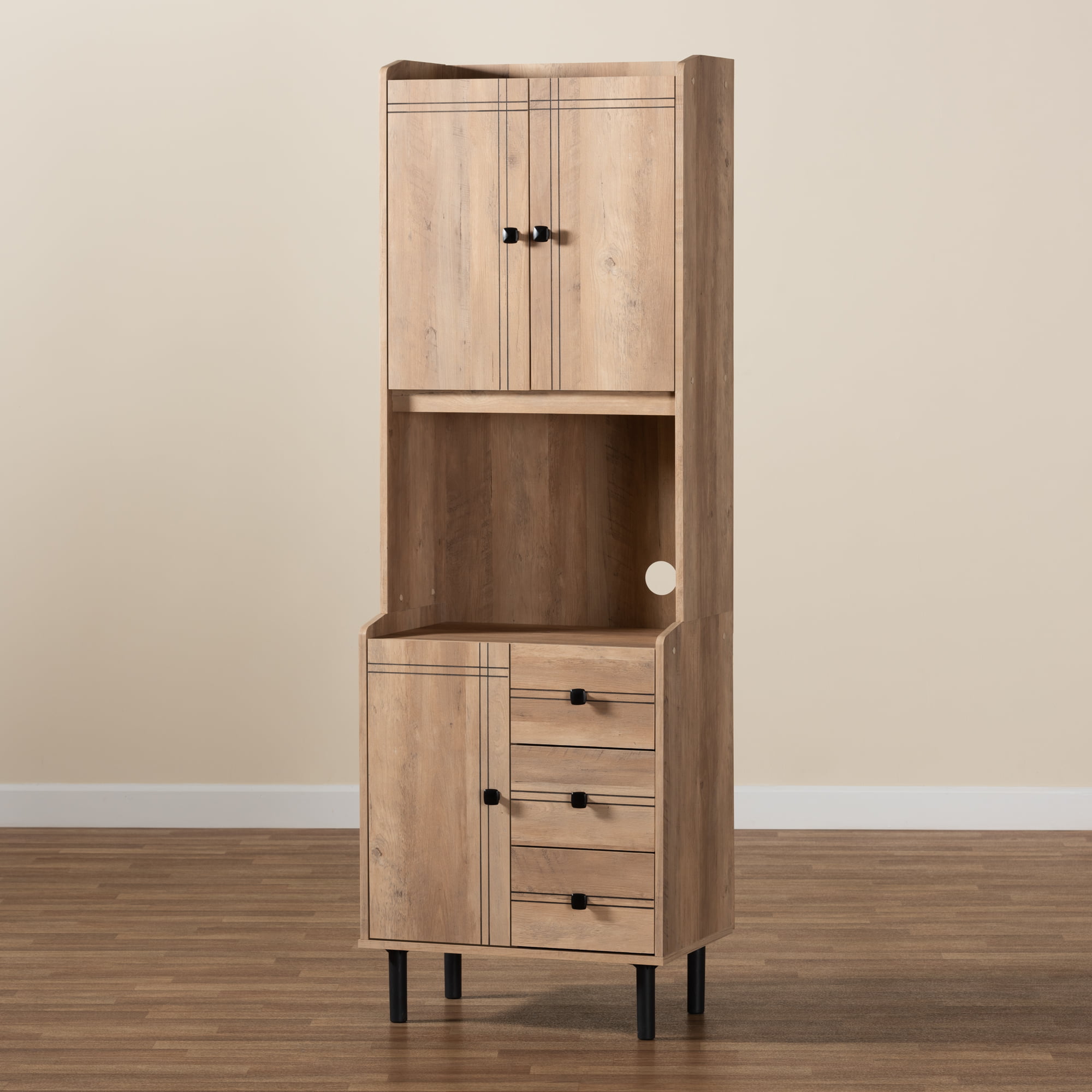 Baxton Studio Lowell Modern and Contemporary Brown Wood Finish Kitchen Cabinet
