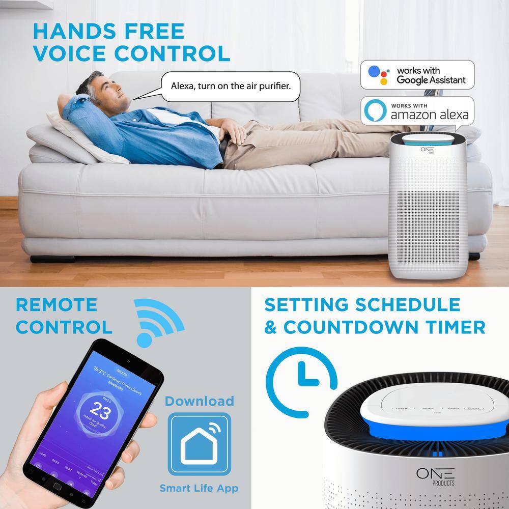 One Smart Consumer Electronics Gear OSAP01 Athena Smart Air Purifier with Voice Control HEPA Filter Included. Compatible with Google Assistant and Alexa with App