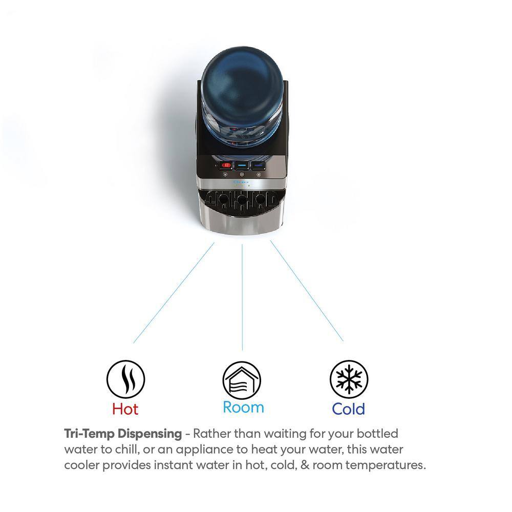 Brio CLTL520 Hot Cold and Room Temp Water Dispenser Cooler Top Load. Tri Temp. Black and Stainless Steel. Essential Series