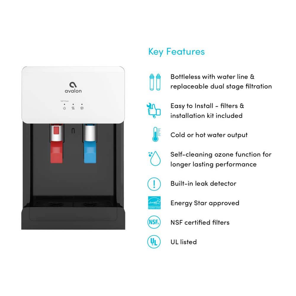 Avalon A8CTWHT Countertop Self Cleaning Touchless Bottle less Water Cooler Dispenser. Hot/Cold Water. NSF/UL/Energy Star. White