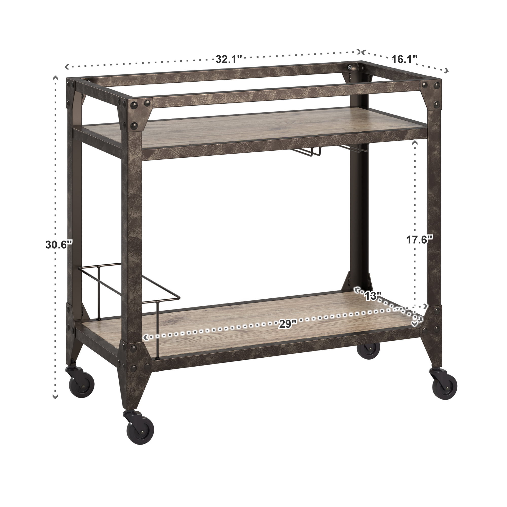 Weston Home Charcoal Metal and Wood Bar Cart