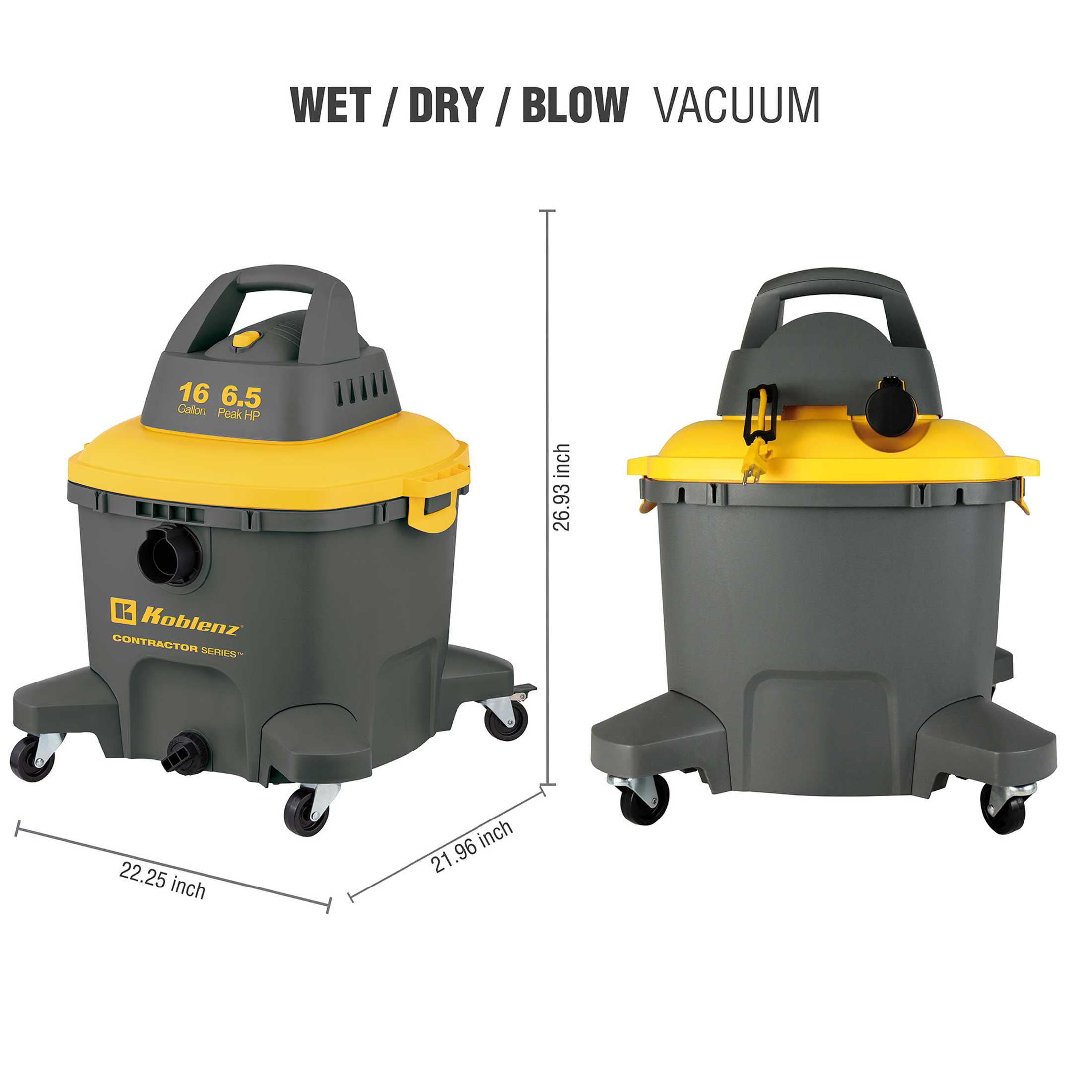 KOBLENZ CONTRACTOR SERIES - Commercial Shop Vacuum Cleaner. 16 Gallon. 6.5 Peak HP Lifetime limited warranty (WD-16 C4)