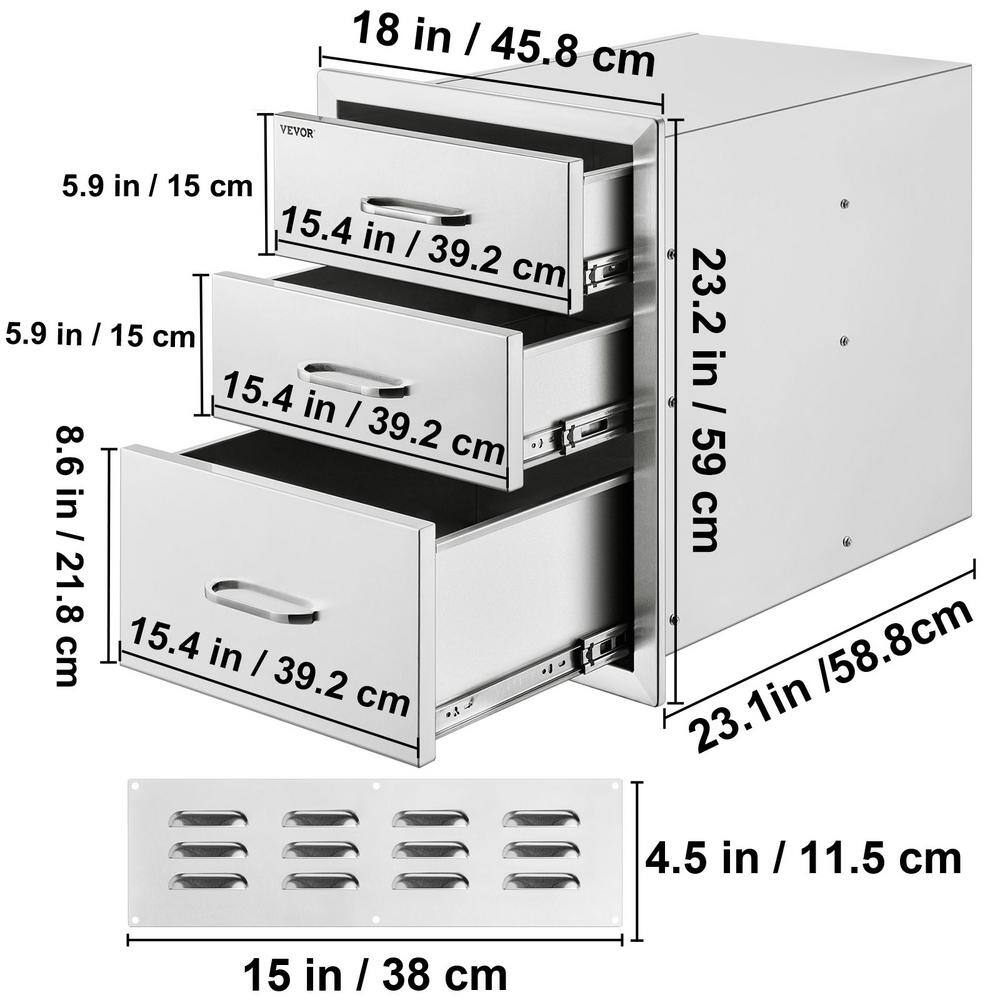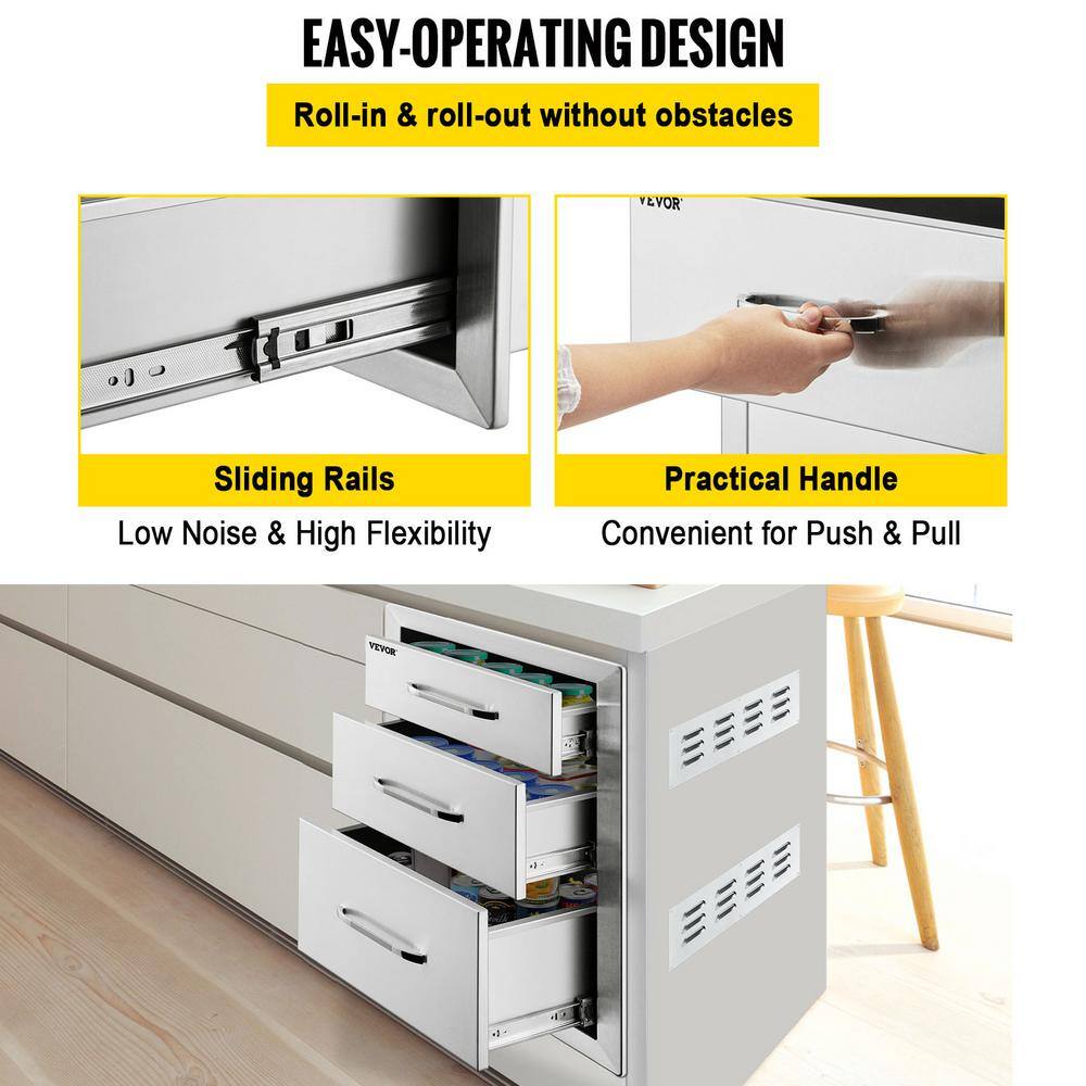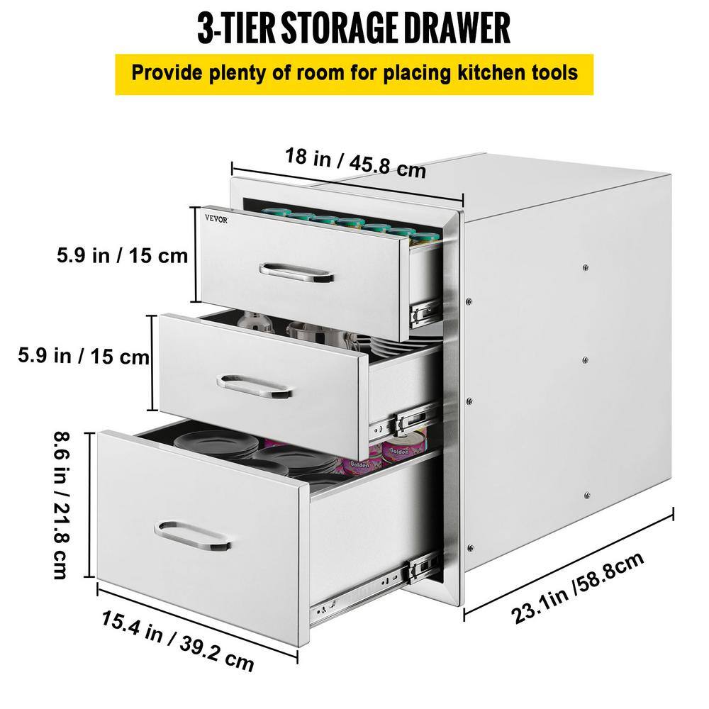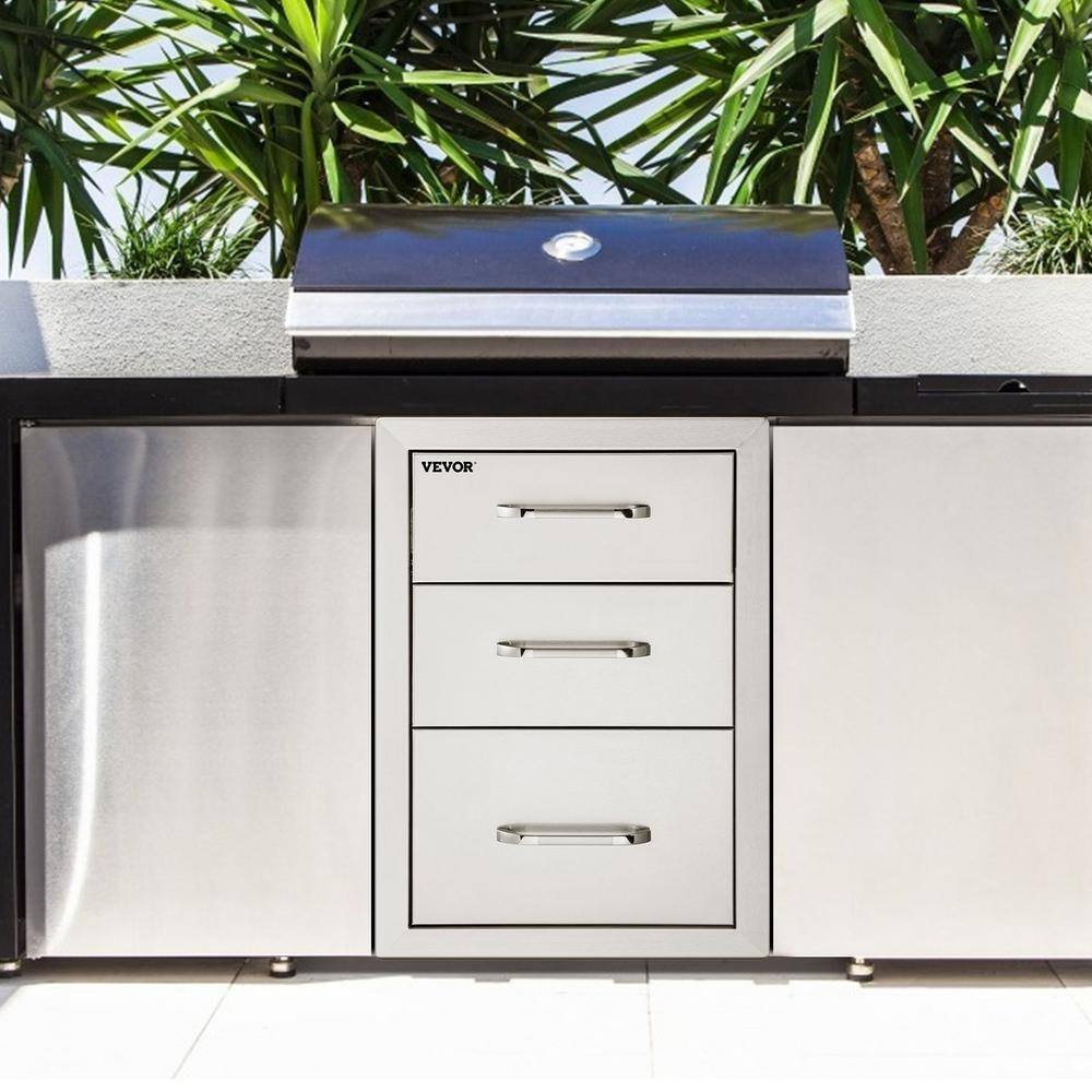 VEVOR 18X23YC3CBXGCTG01V0 18 in. W x 23.2 in. H x 23.1 in. D Outdoor Kitchen Stainless Steel Triple BBQ Access Drawers with Chrome Handle