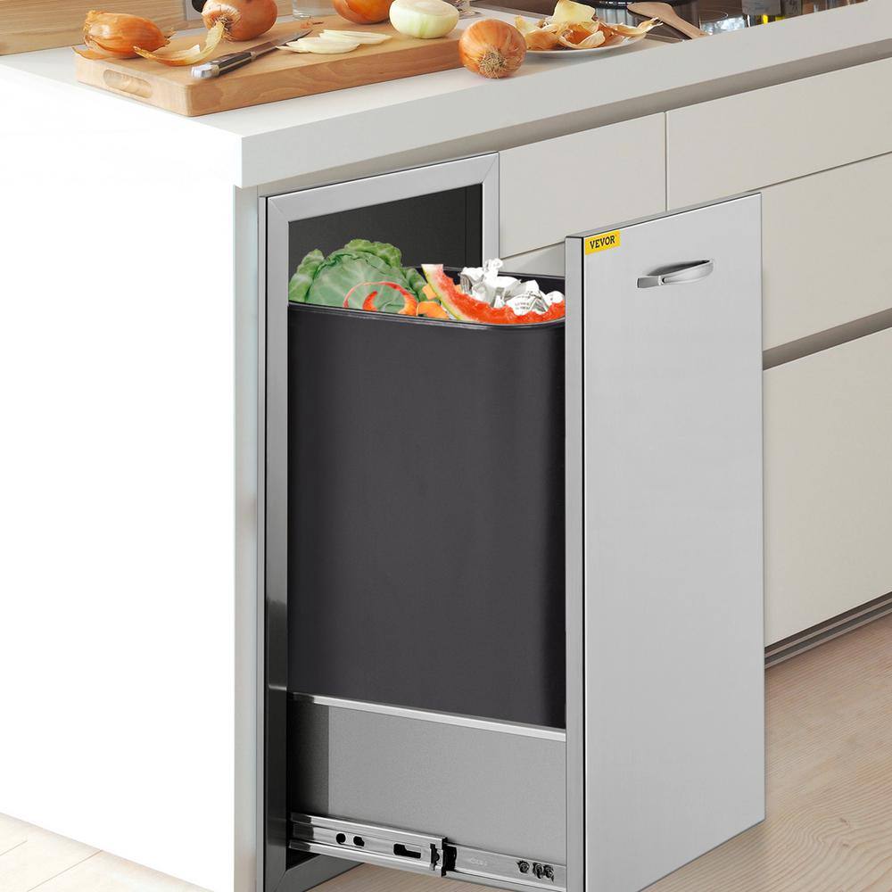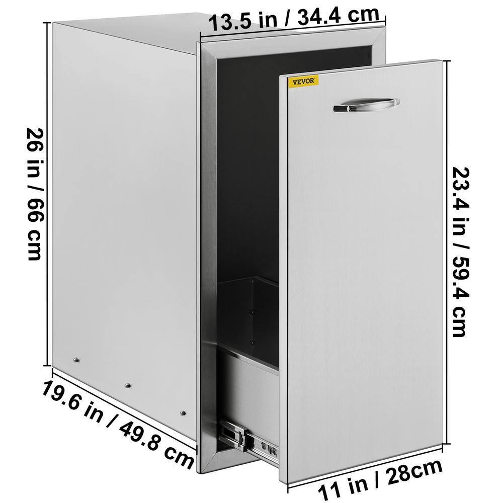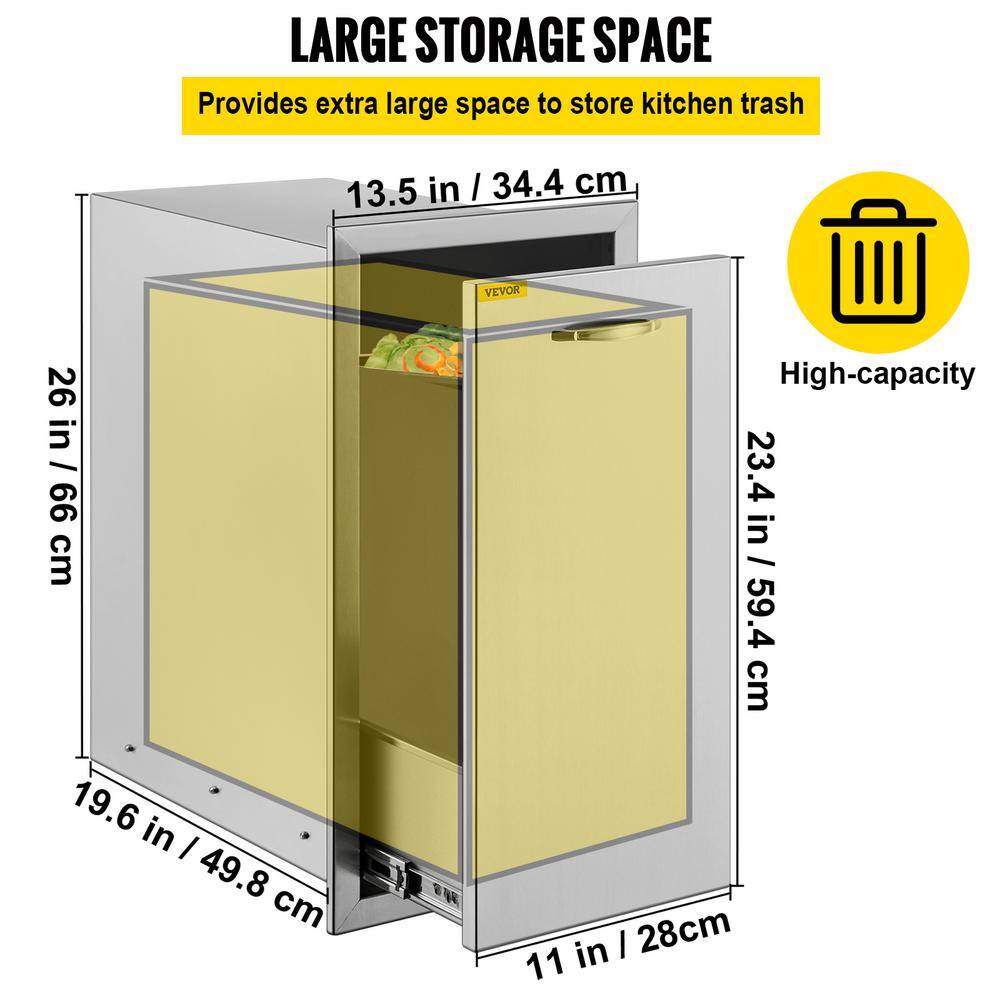 VEVOR CTGXHGLJG00000001V0 13.6 in. W x 26 in. H x 19.3 in. D Lower Sliding Rails Stainless Steel Outdoor Kitchen Trash Drawer with Handle
