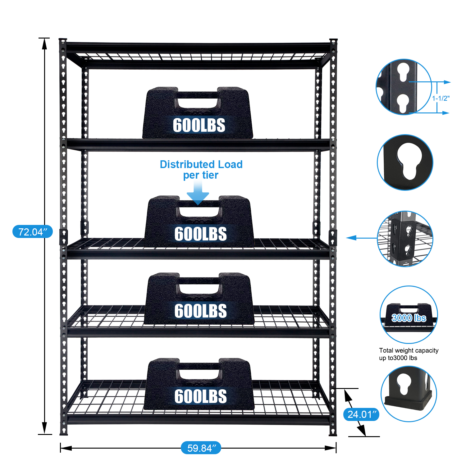 Pachira 60″W x 24″D x 72″H 5-Shelf Steel Shelving. Black