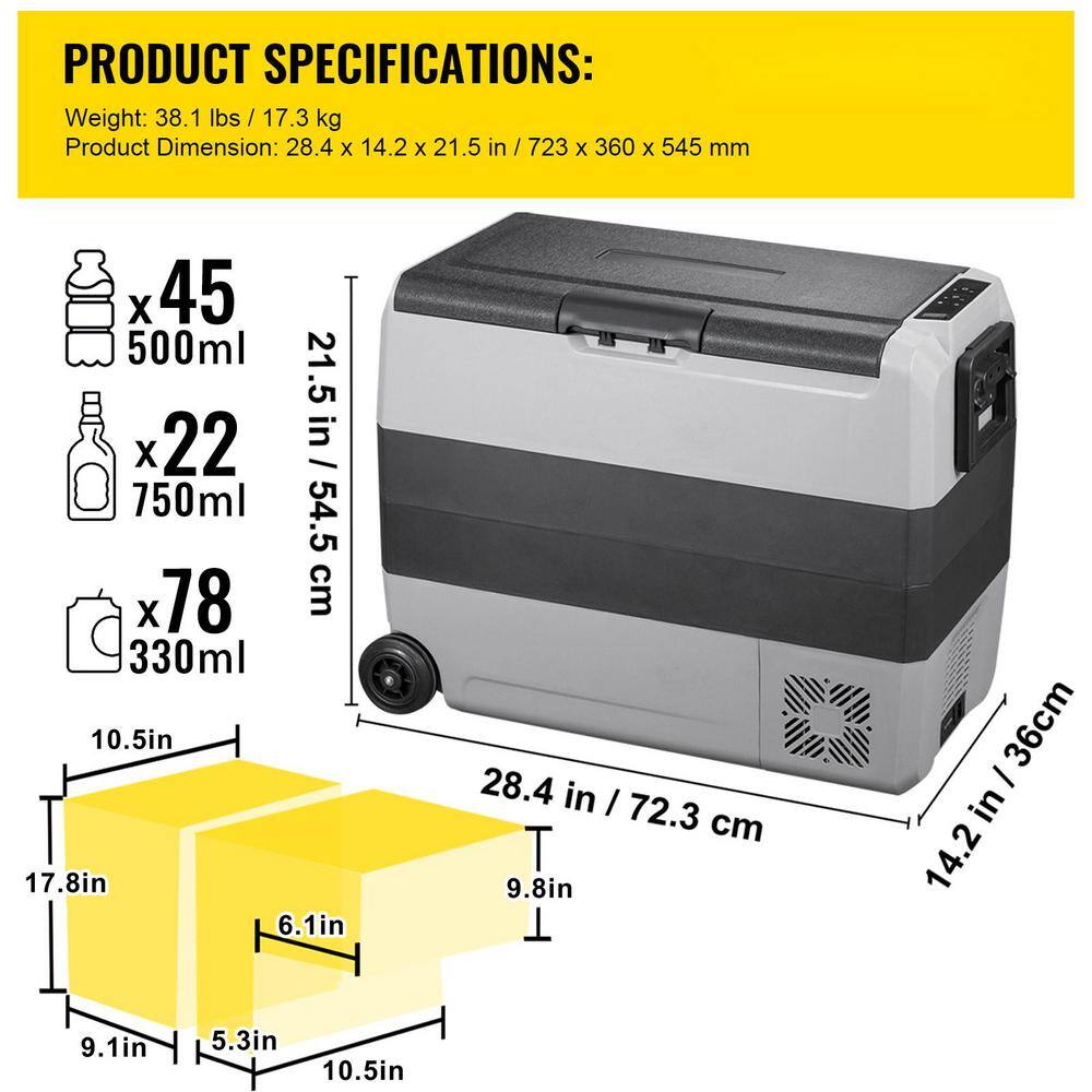 VEVOR FTBZPE60L110V2ZNTV1 2.12 cu. ft. Dual Zone Car Fridge App Control Portable Freezer with Wheels for Vehicle Outdoor Refrigerator in Black