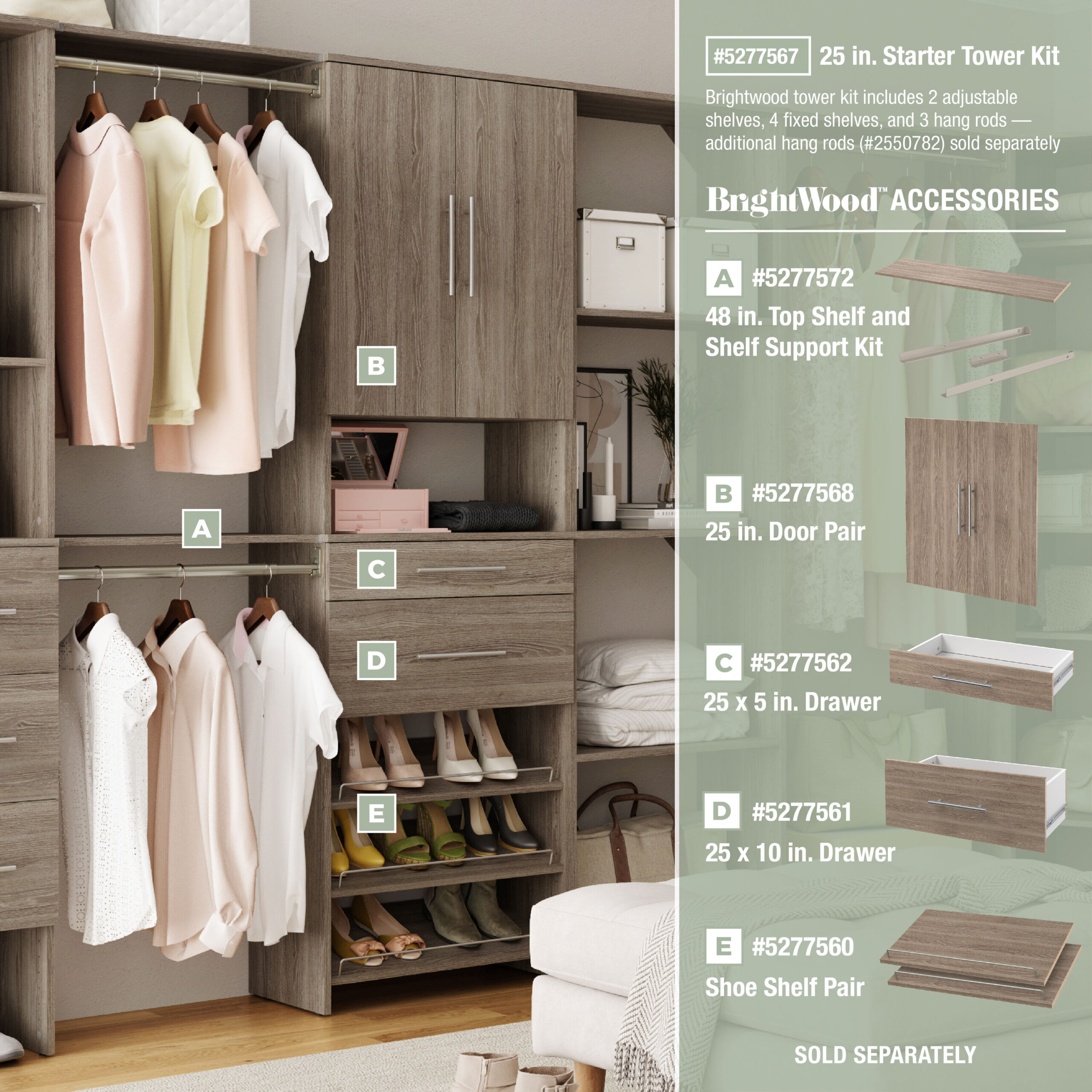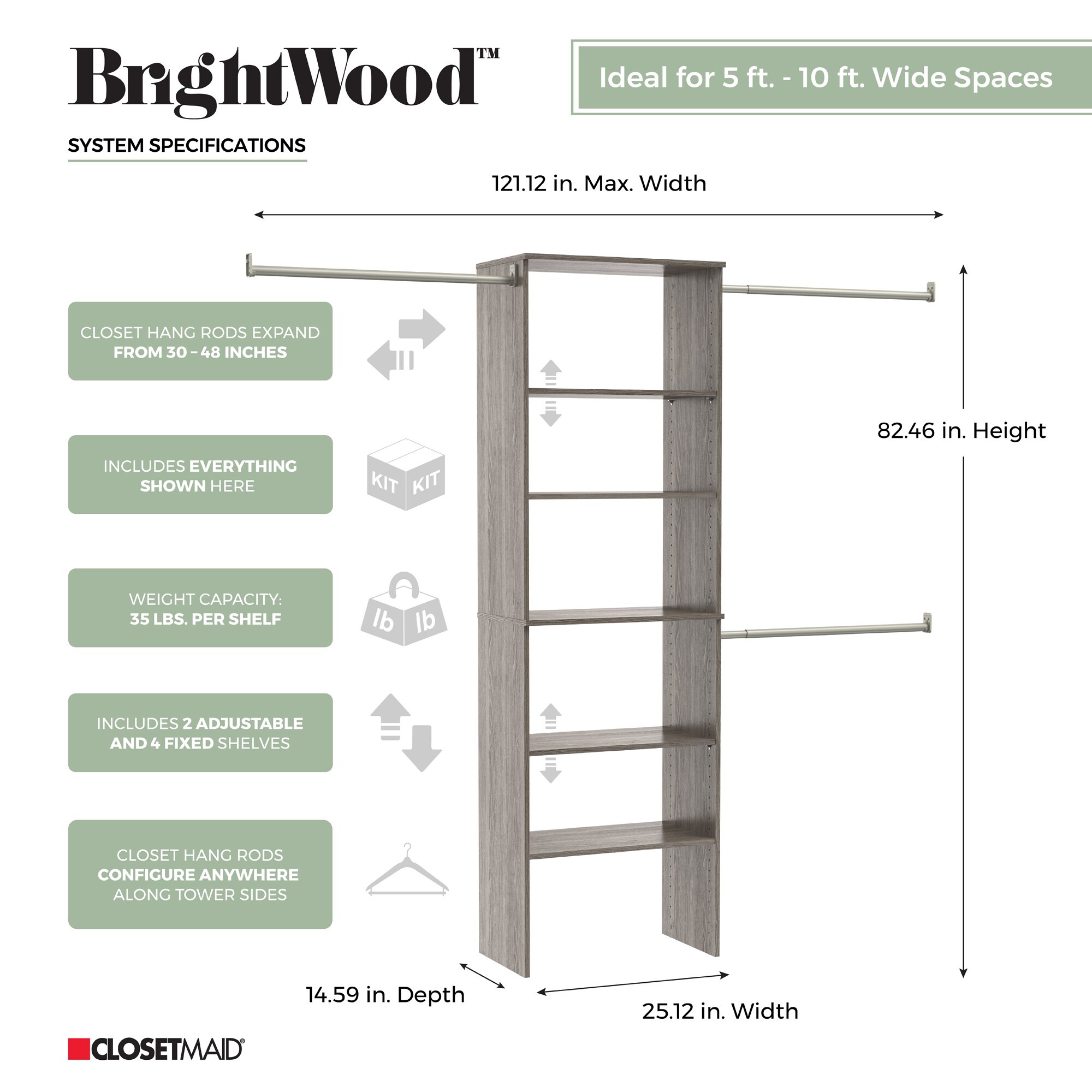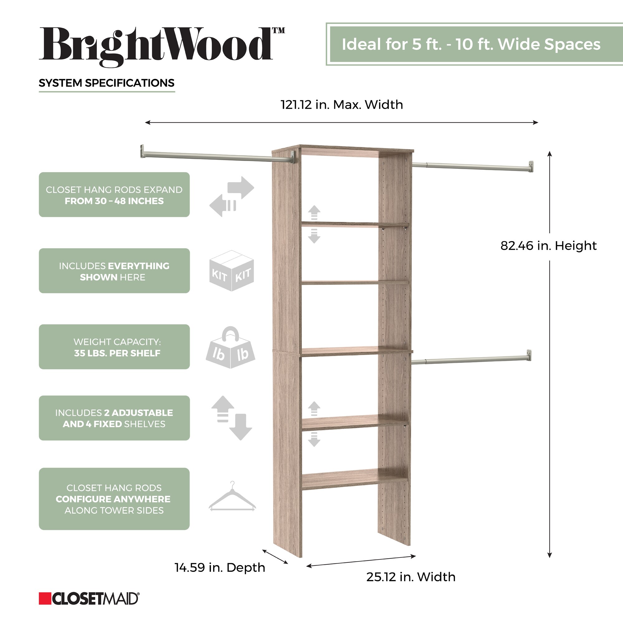 ClosetMaid BrightWood 5-ft to 10-ft W x 6.85-ft H Latte Wood Closet System