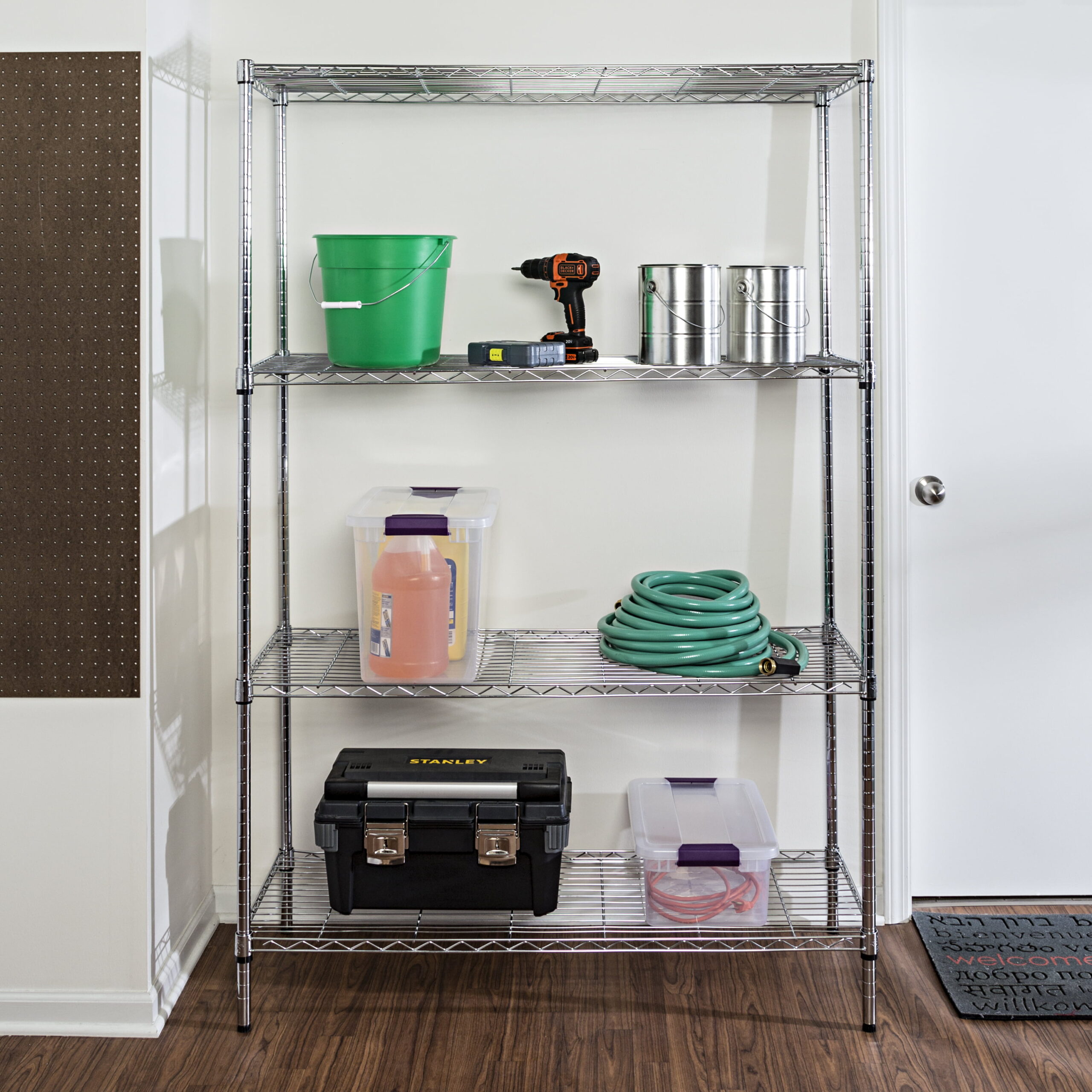 Honey-Can-Do 4-Tier Adjustable Chrome Shelving Unit with 350-lb Per-Shelf Capacity.Shelves & Shelf Units Chrome.Steel
