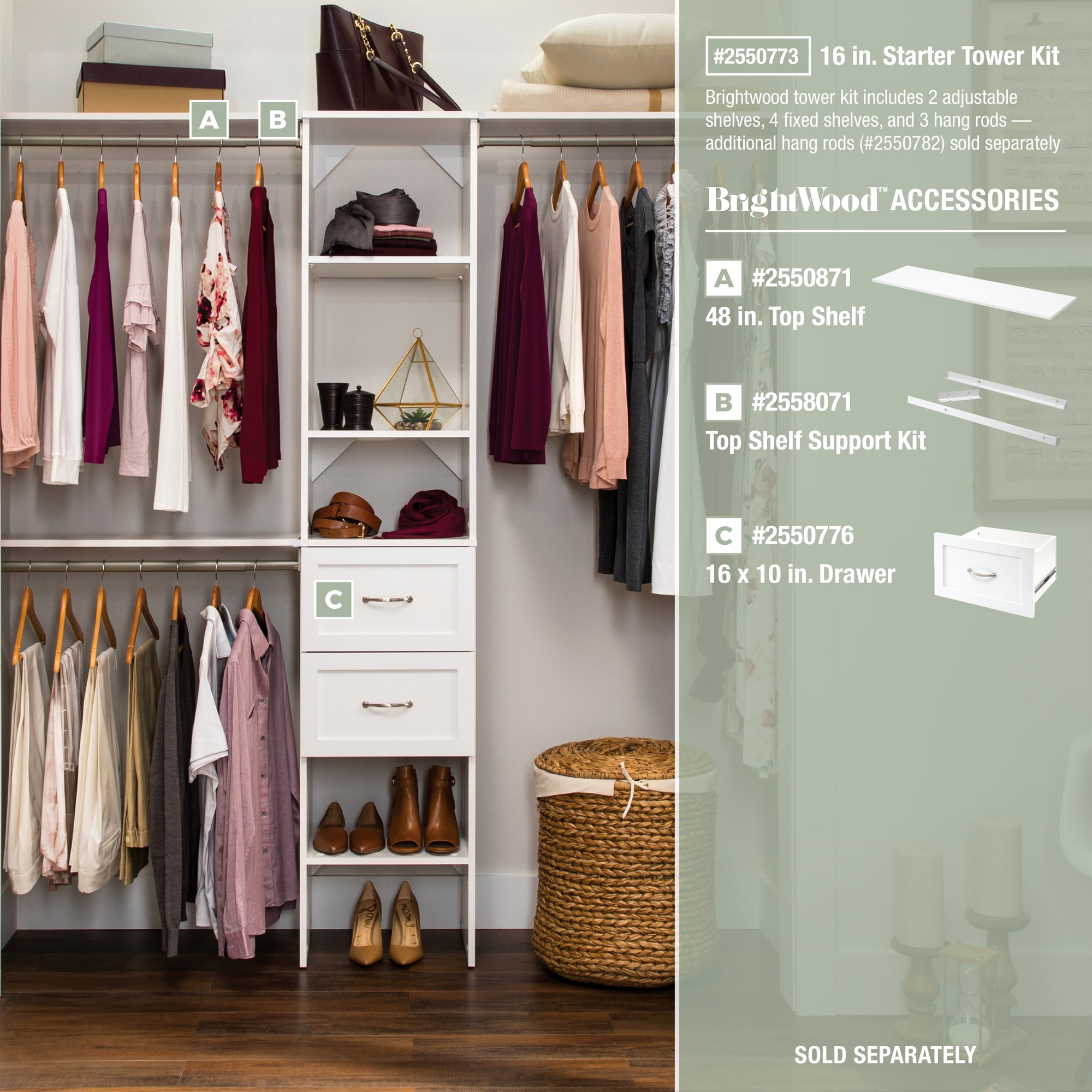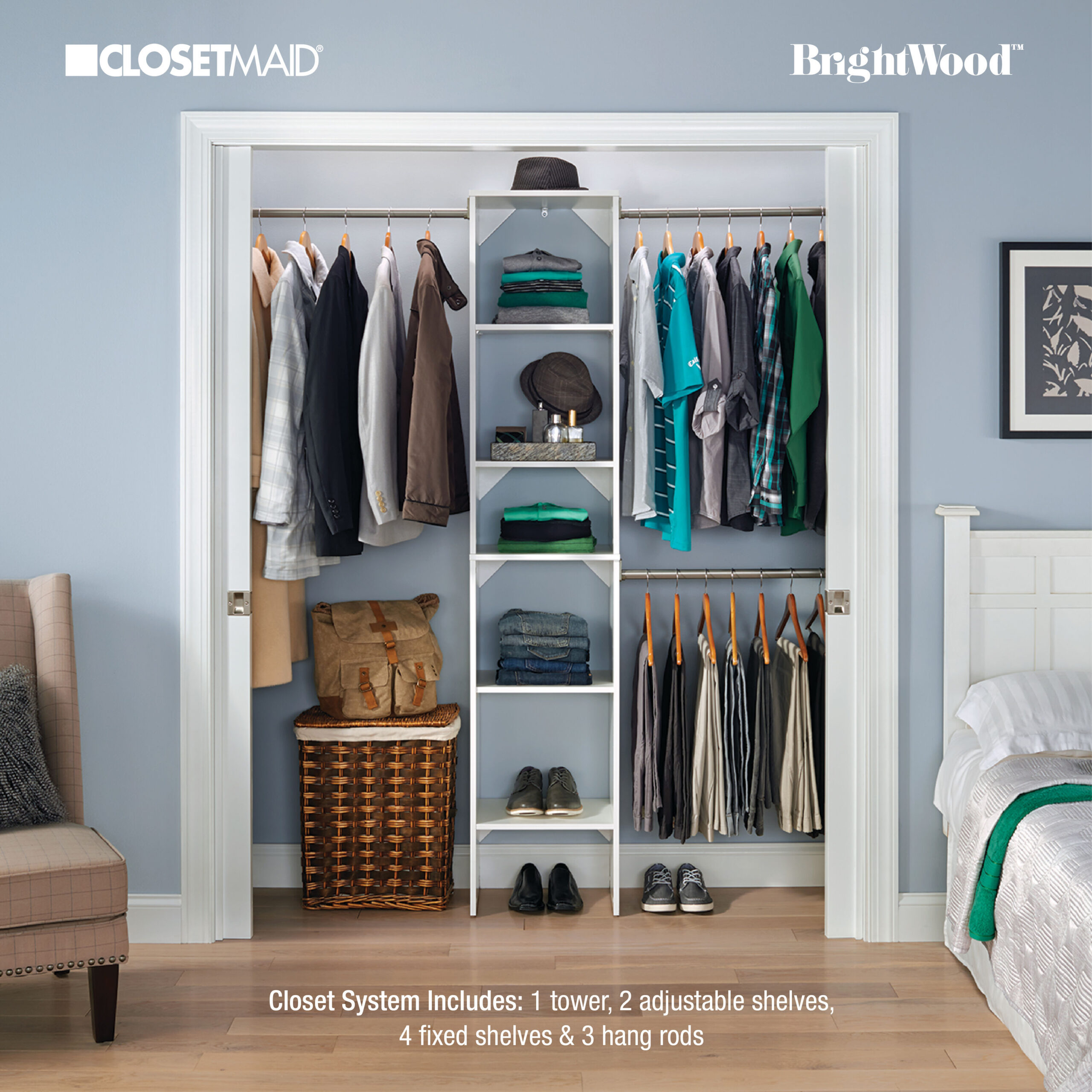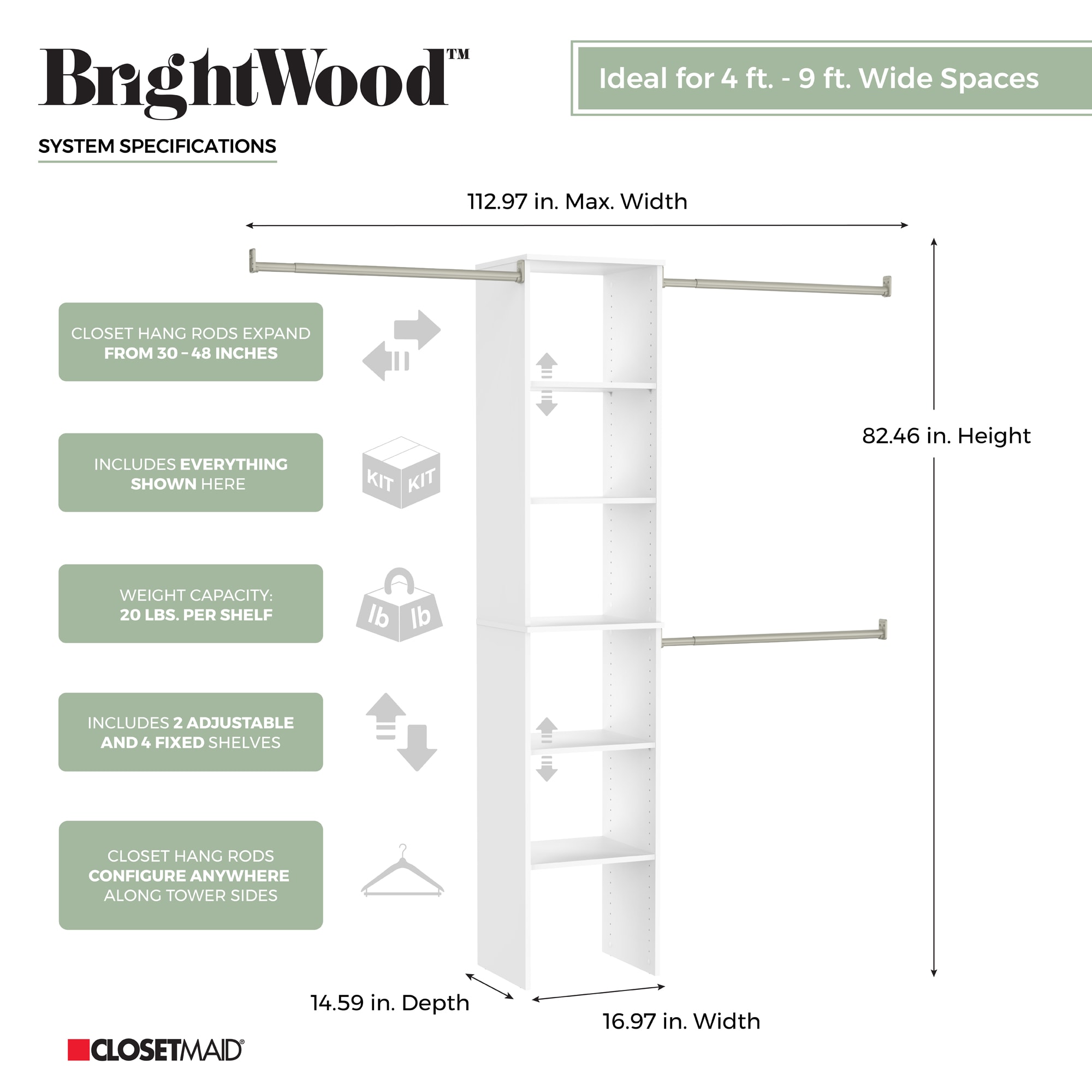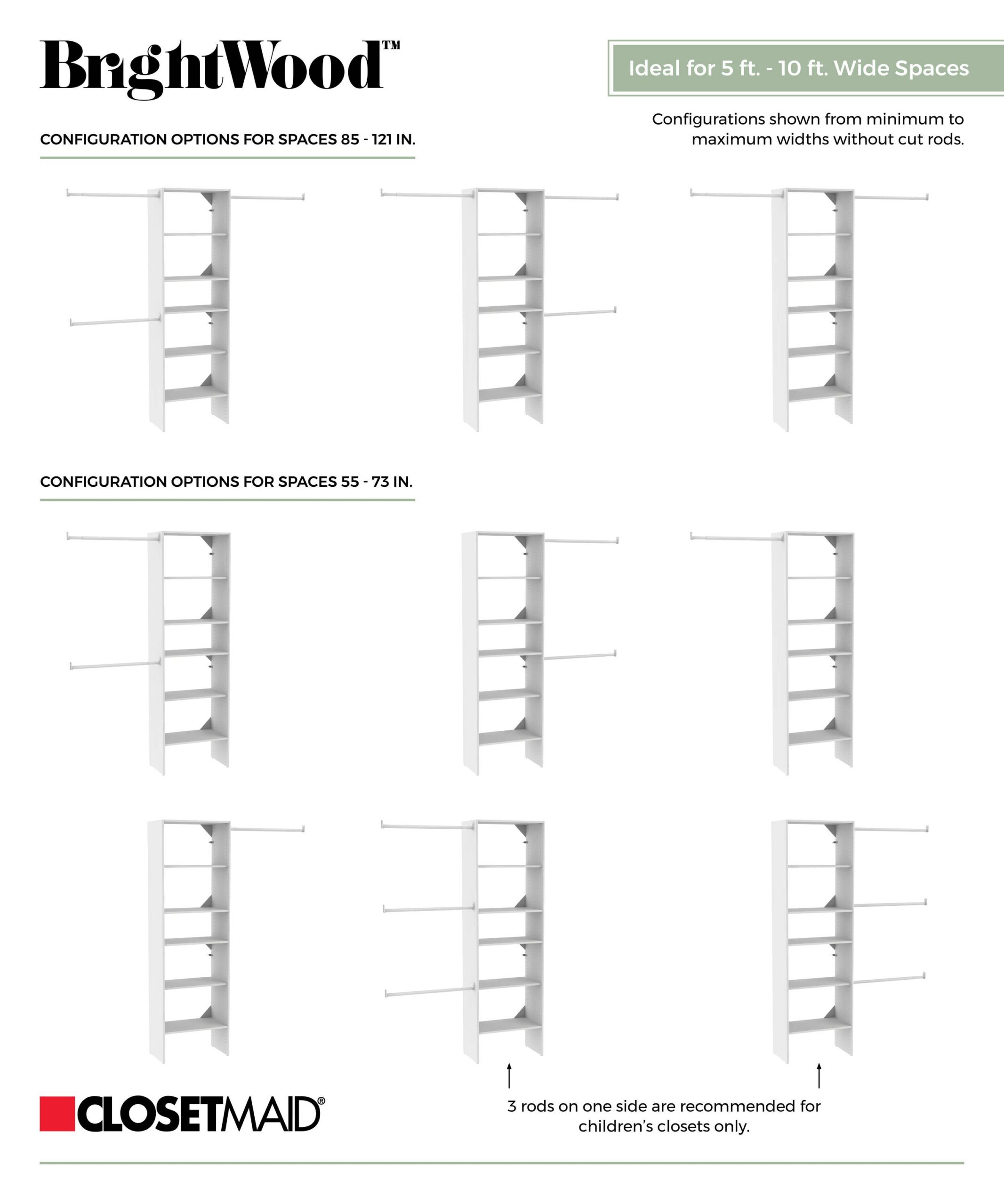 ClosetMaid BrightWood 4-ft to 9-ft W x 6.85-ft H White Wood Closet System