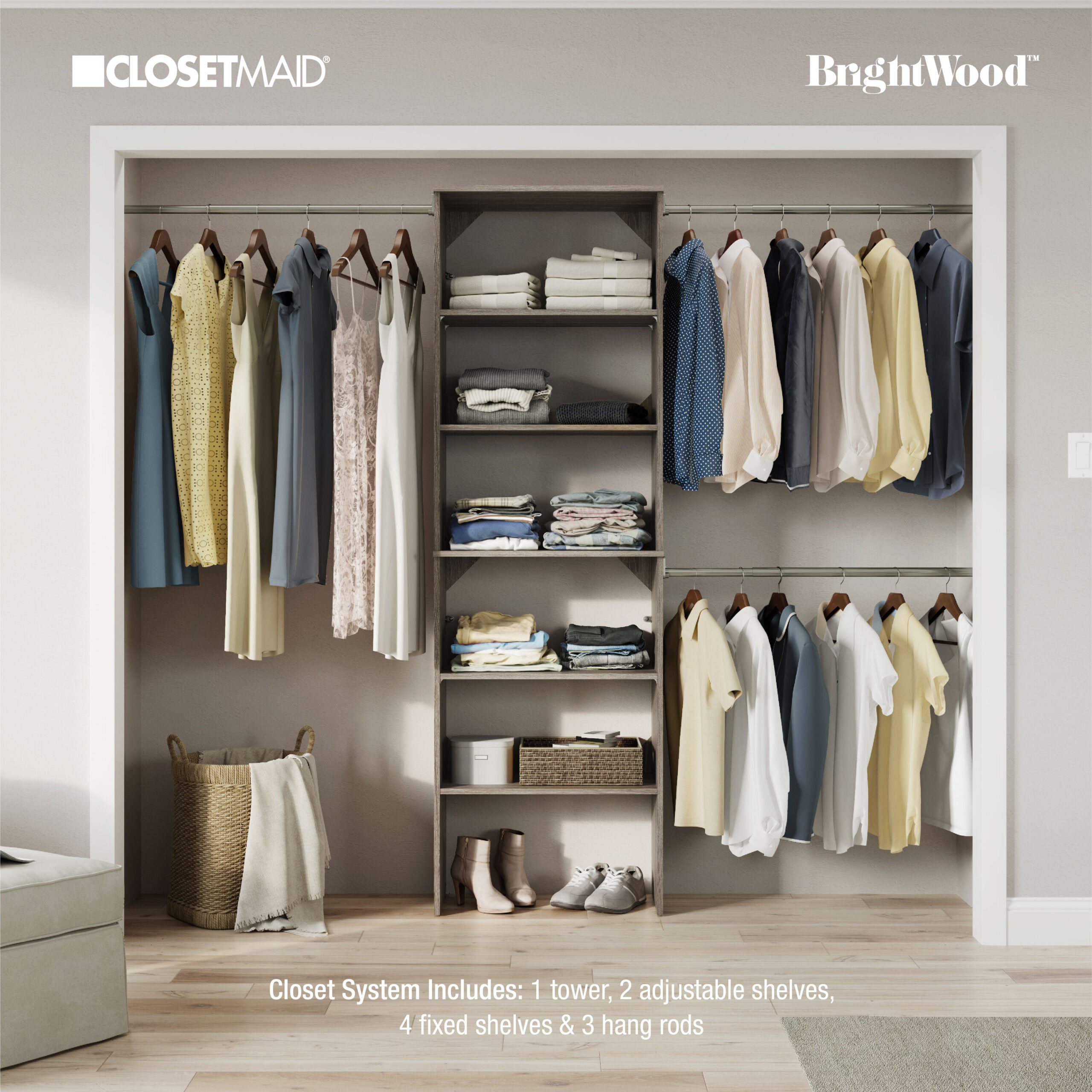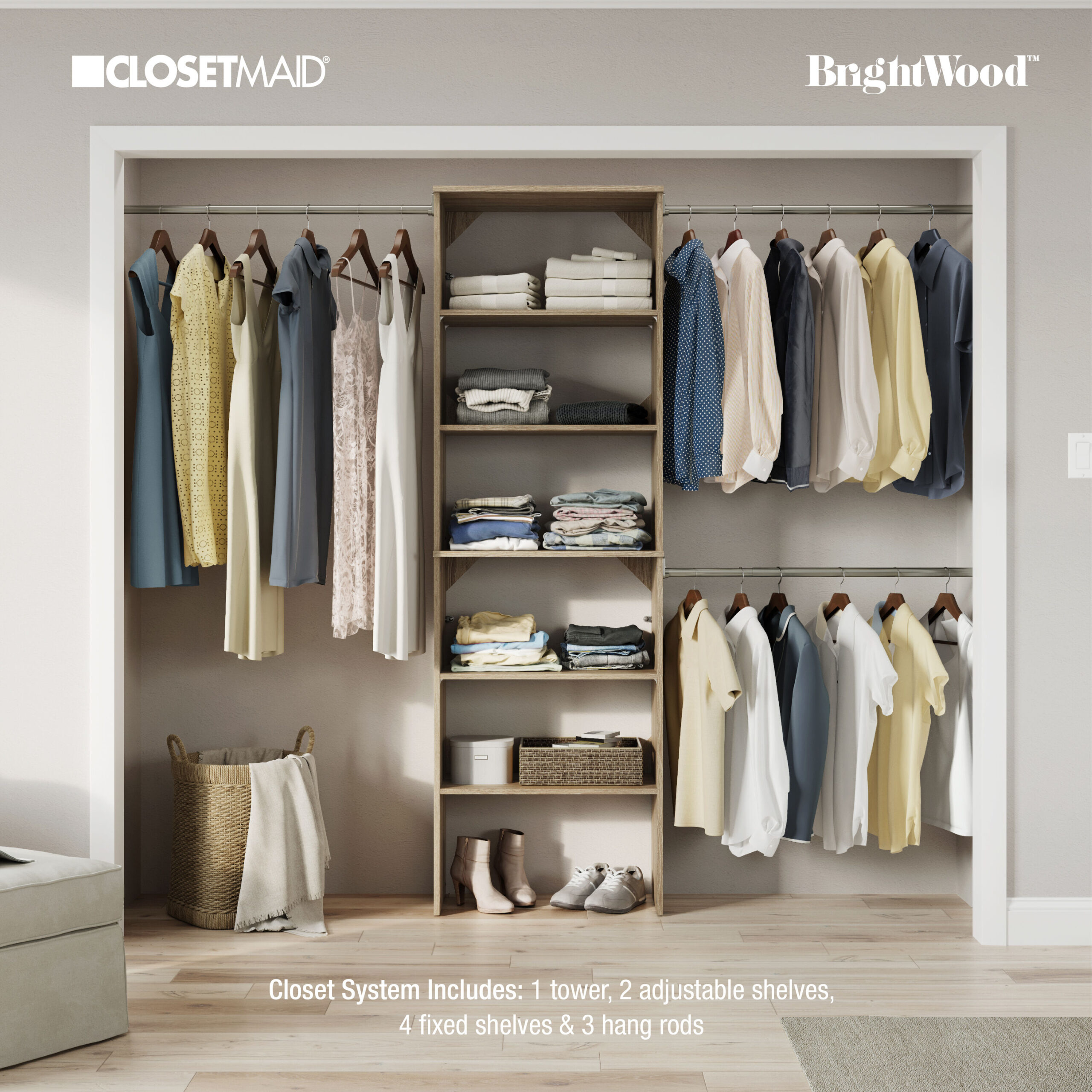 ClosetMaid BrightWood 5-ft to 10-ft W x 6.85-ft H Ash Wood Closet System