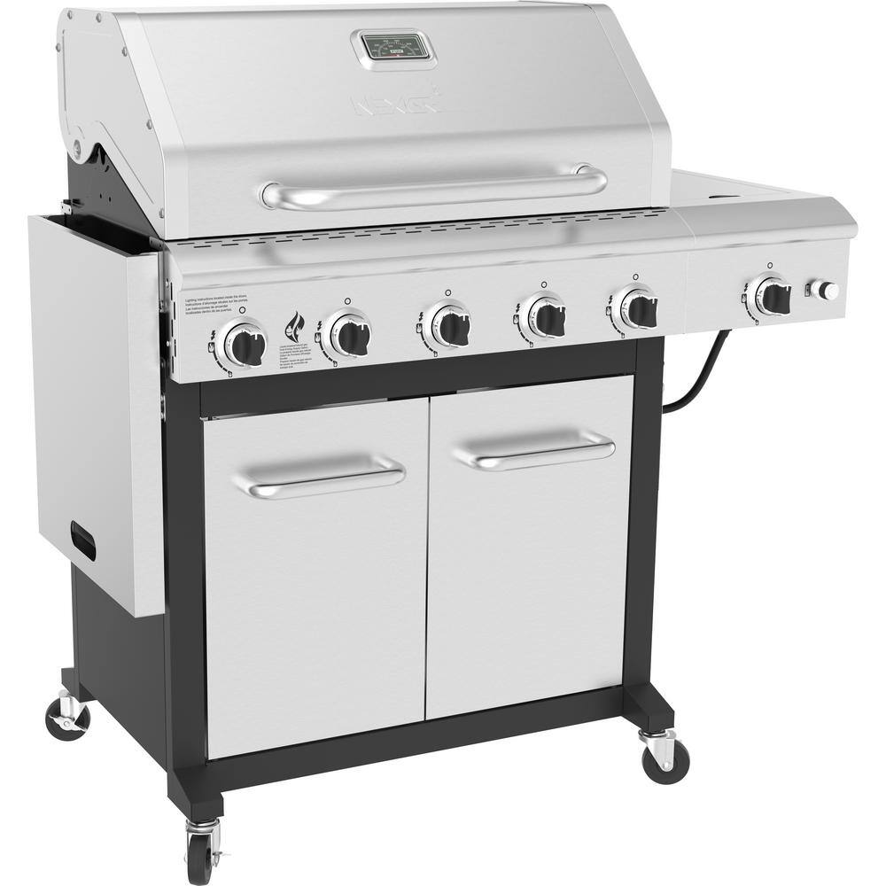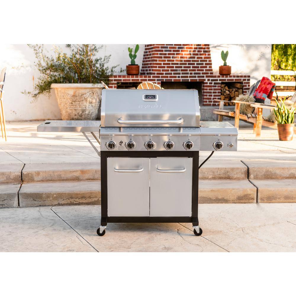 Nexgrill 720-1046 5-Burner Propane Gas Grill in Stainless Steel with Side Burner and Foldable Side Shelf