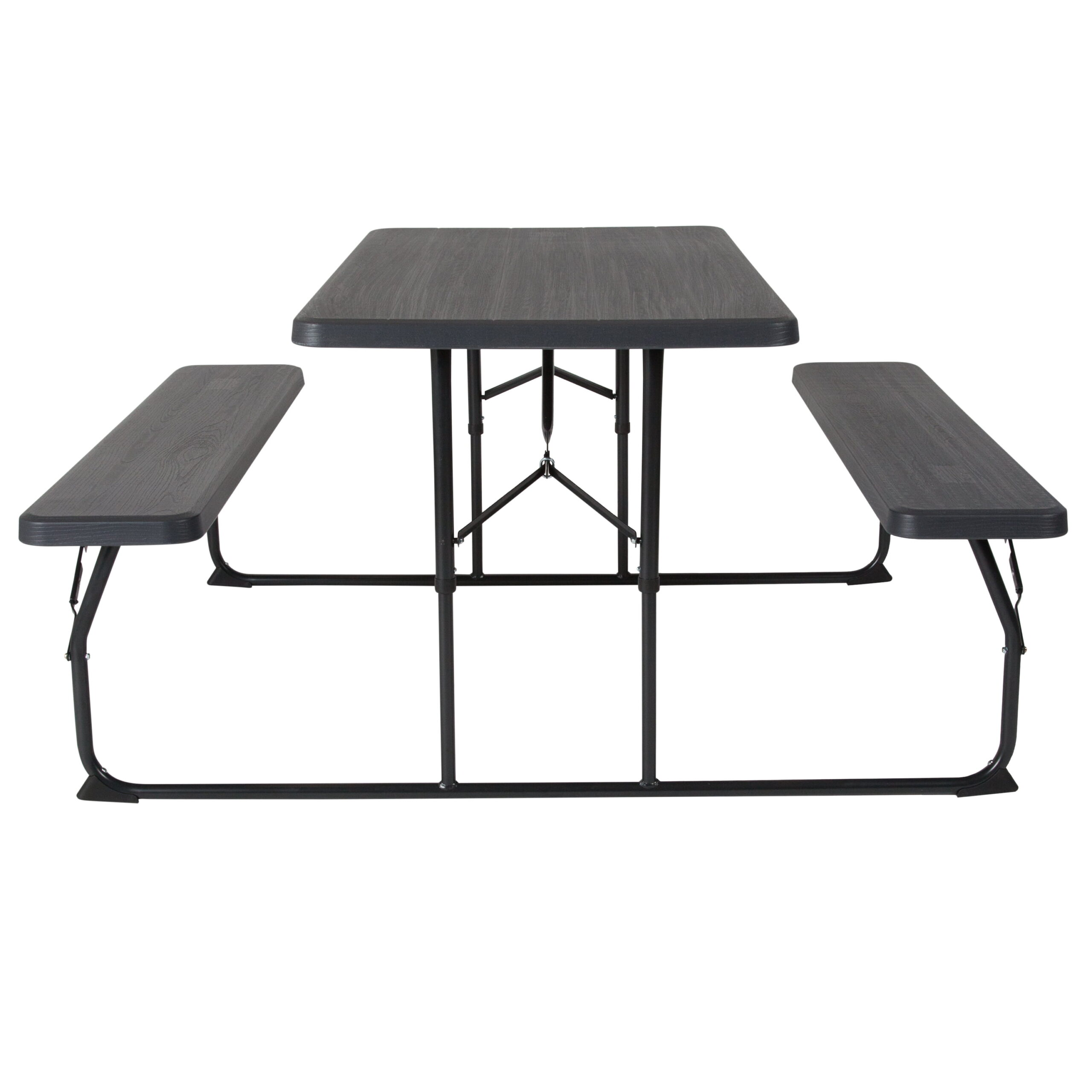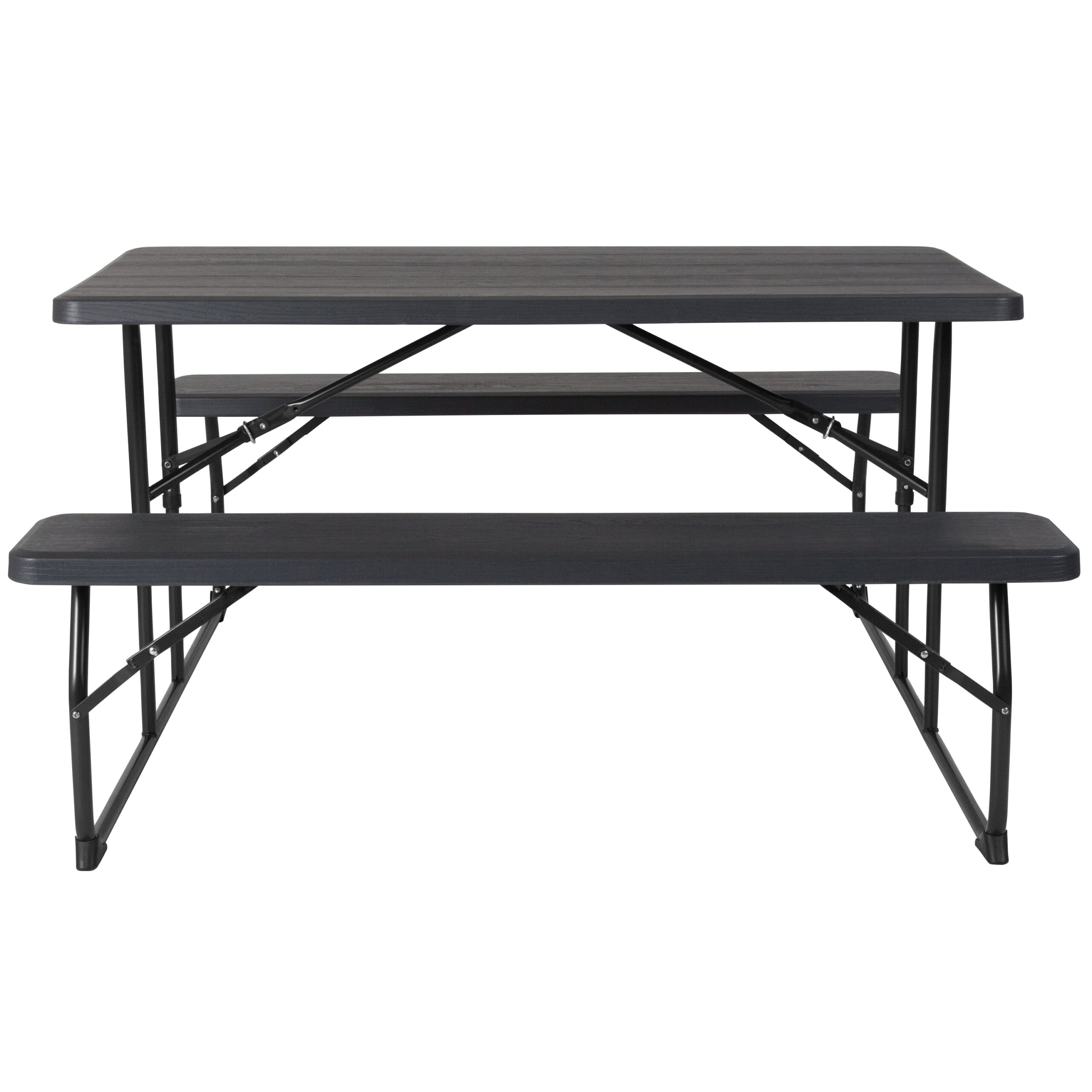 Flash Furniture Insta-Fold Charcoal Wood Grain Folding Picnic Table and Benches - 4.5 Foot Folding Table