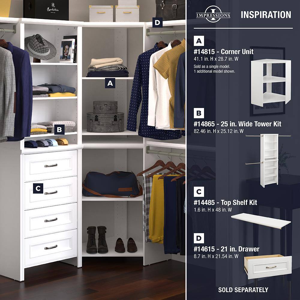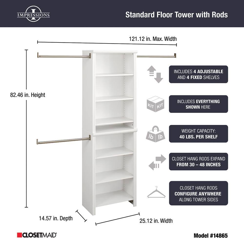 ClosetMaid 14865 Impressions Standard 60 in. W - 120 in. W White Wood Closet System