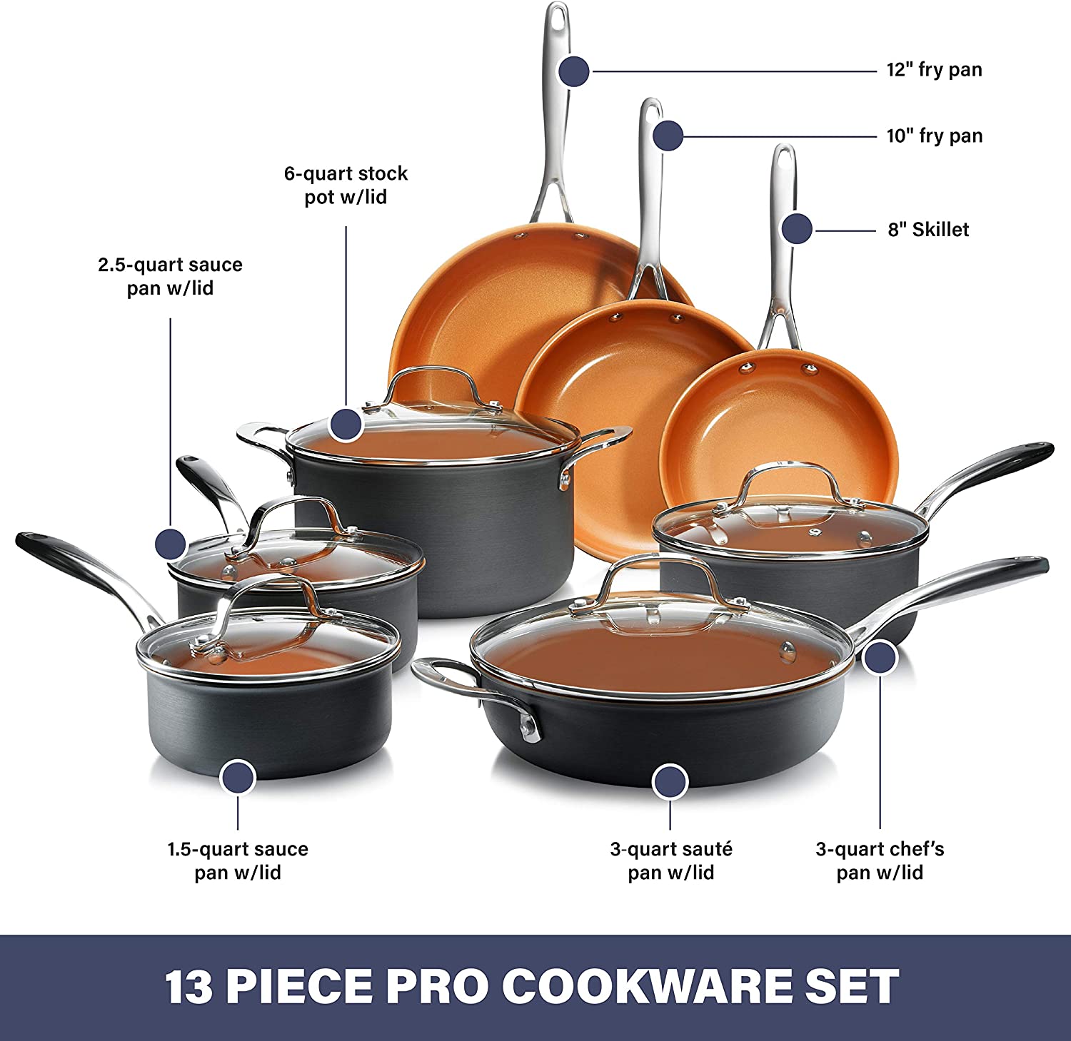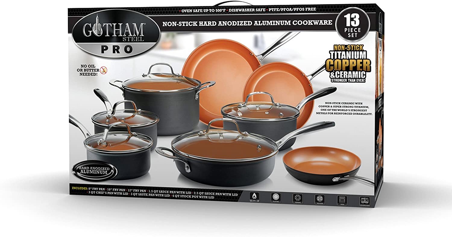 Gotham Steel Pro Pots and Pans Set Nonstick 13 Piece Hard Anodized Kitchen Cookware Sets with Nonstick Ceramic Cookware Set. Oven. Dishwasher Safe Metal Utensil Safe Non Stick Frying Pan Set. Nonstick