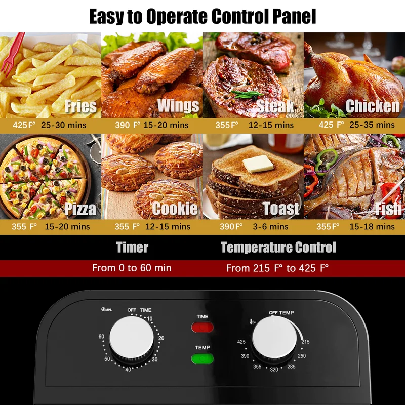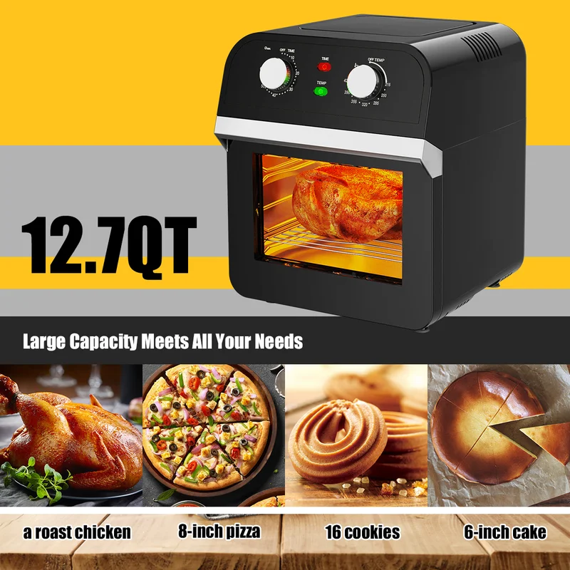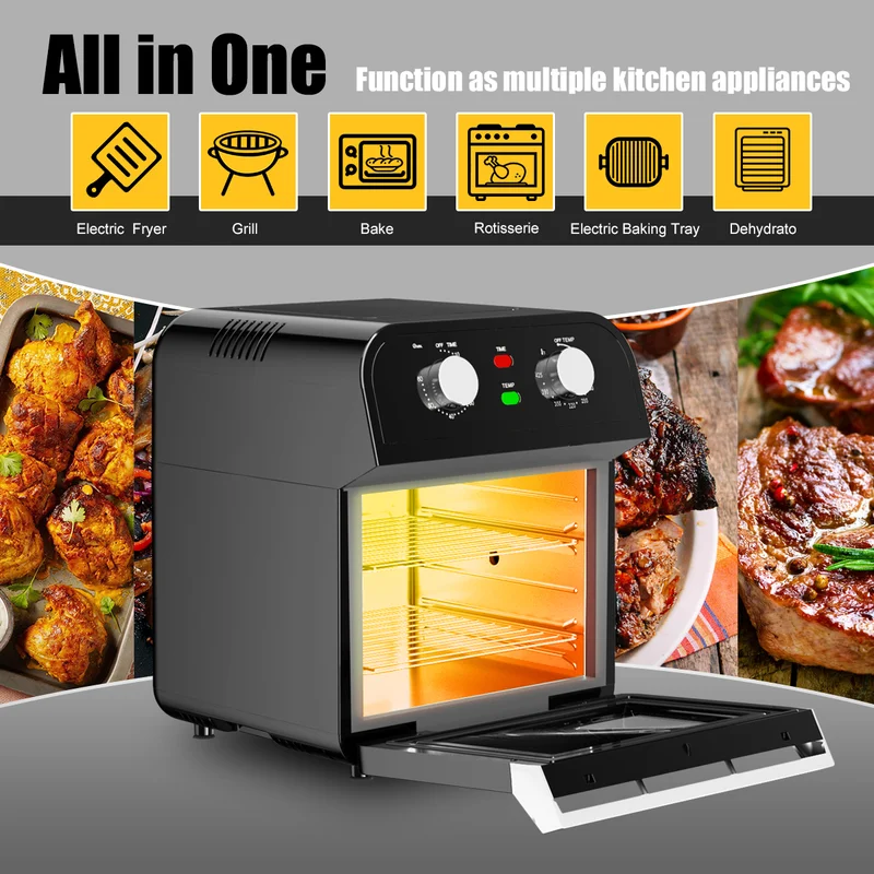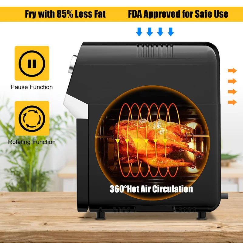 Costway EP24373 12.7 qt. Black Air Fryer with Rotisserie