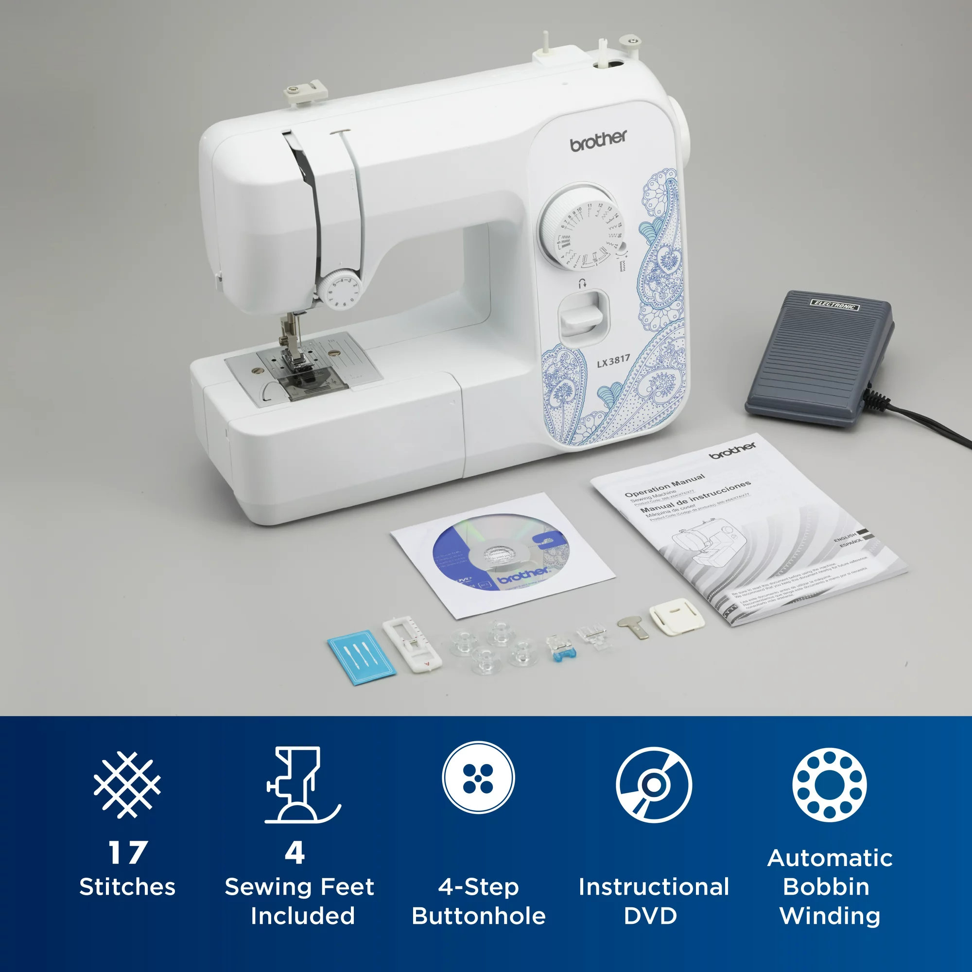Brother LX3817 17-Stitch Portable Full-Size Sewing Machine. White