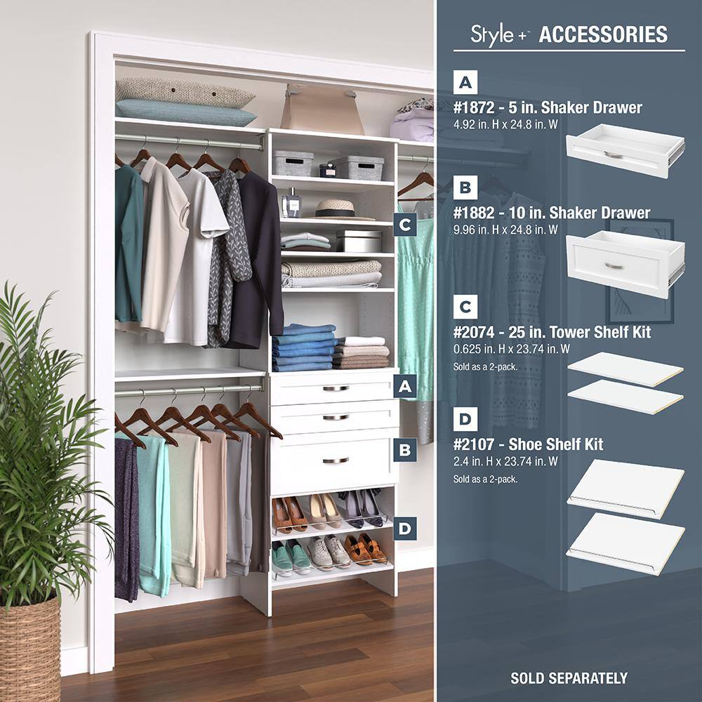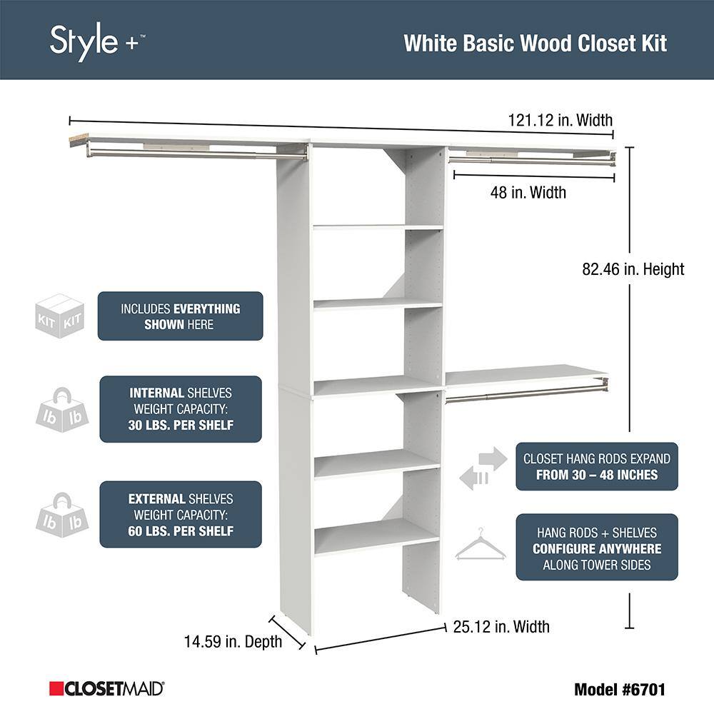 ClosetMaid 6701 Style+ 73.1 in W - 121.1 in W White Basic Wood Closet System Kit