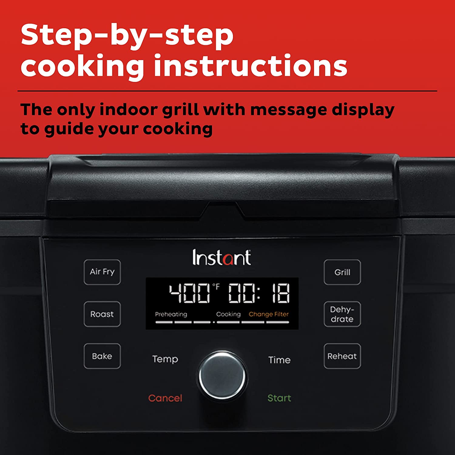 Instant 6-in-1 Indoor Grill and Air Fryer with Bake. Roast Reheat & Dehydrate. From the Makers of Instant Pot. with Odor-Reducing Filter. Clear Cooking Window. and Removable Lid for Easy Cleaning