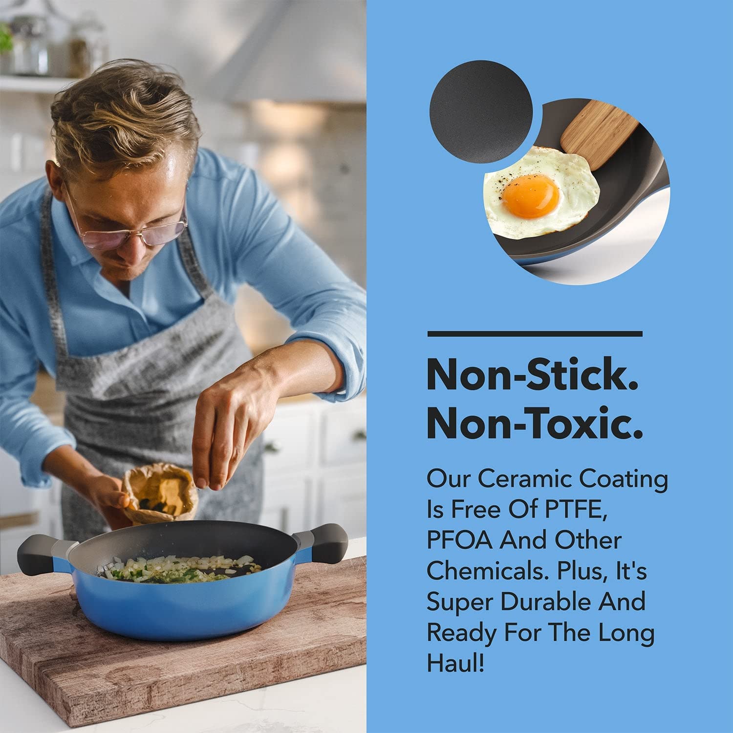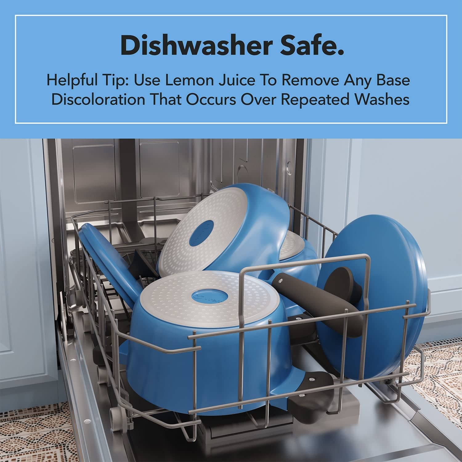 Vremi 8 Piece Ceramic Nonstick Cookware Set Induction Stovetop Compatible Dishwasher Safe Non Stick Pots and Frying Pans with Lids. Blue