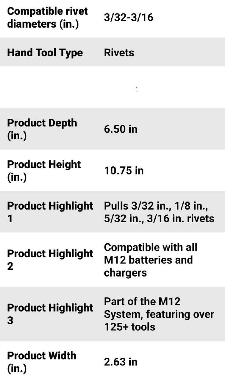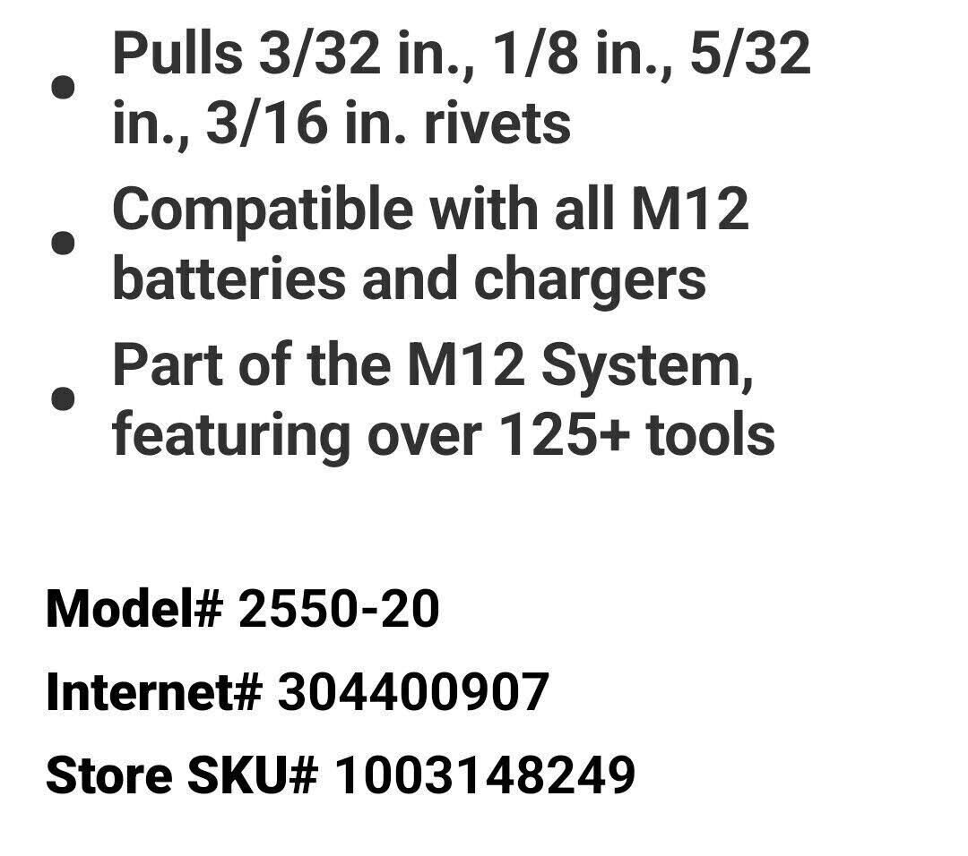 Milwaukee M12 Rivet Tool (Bare Tool) Reconditioned- 2550-80