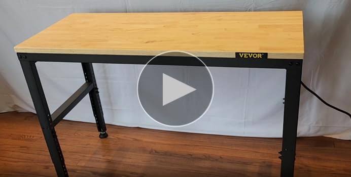 VEVOR Workbench Adjustable Height 61" x 20" Garage Table w/ 27.1"- 36" Heights & 2000 lbs Load Capacity with Power Outlets & Hardwood Top & Metal