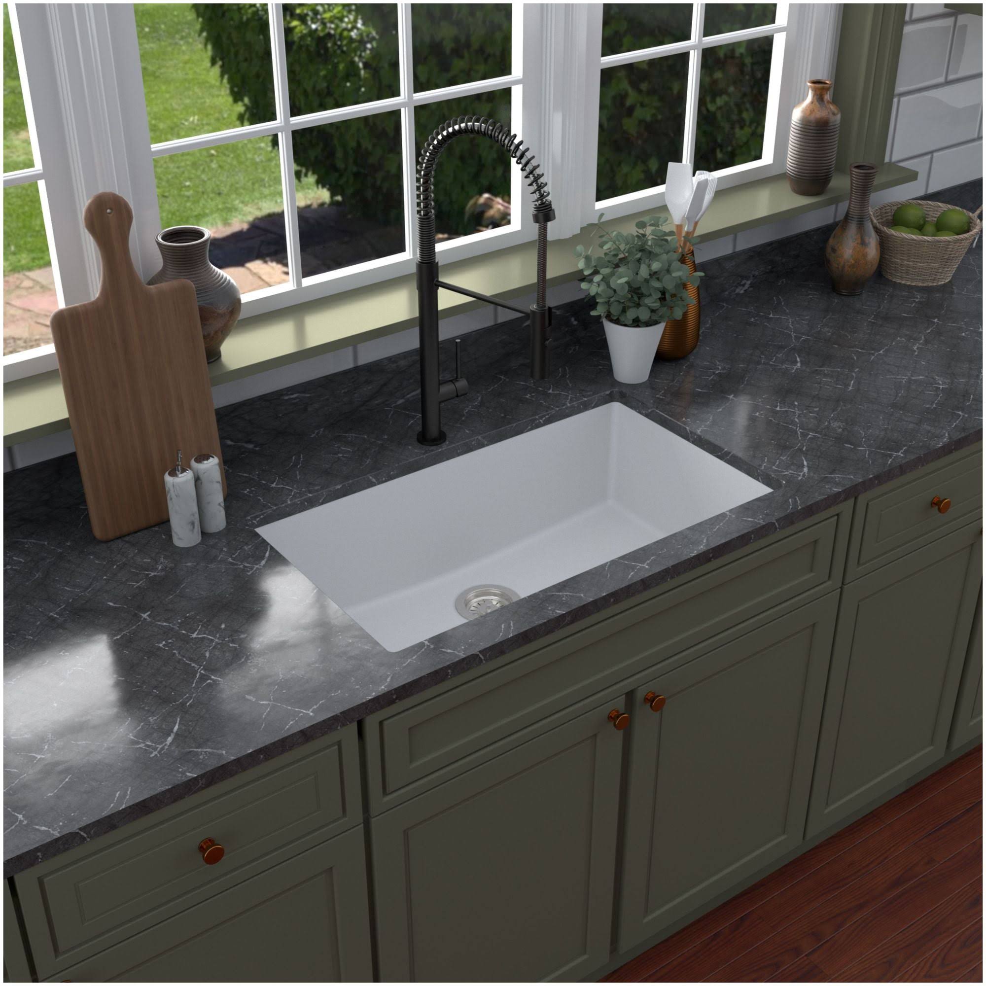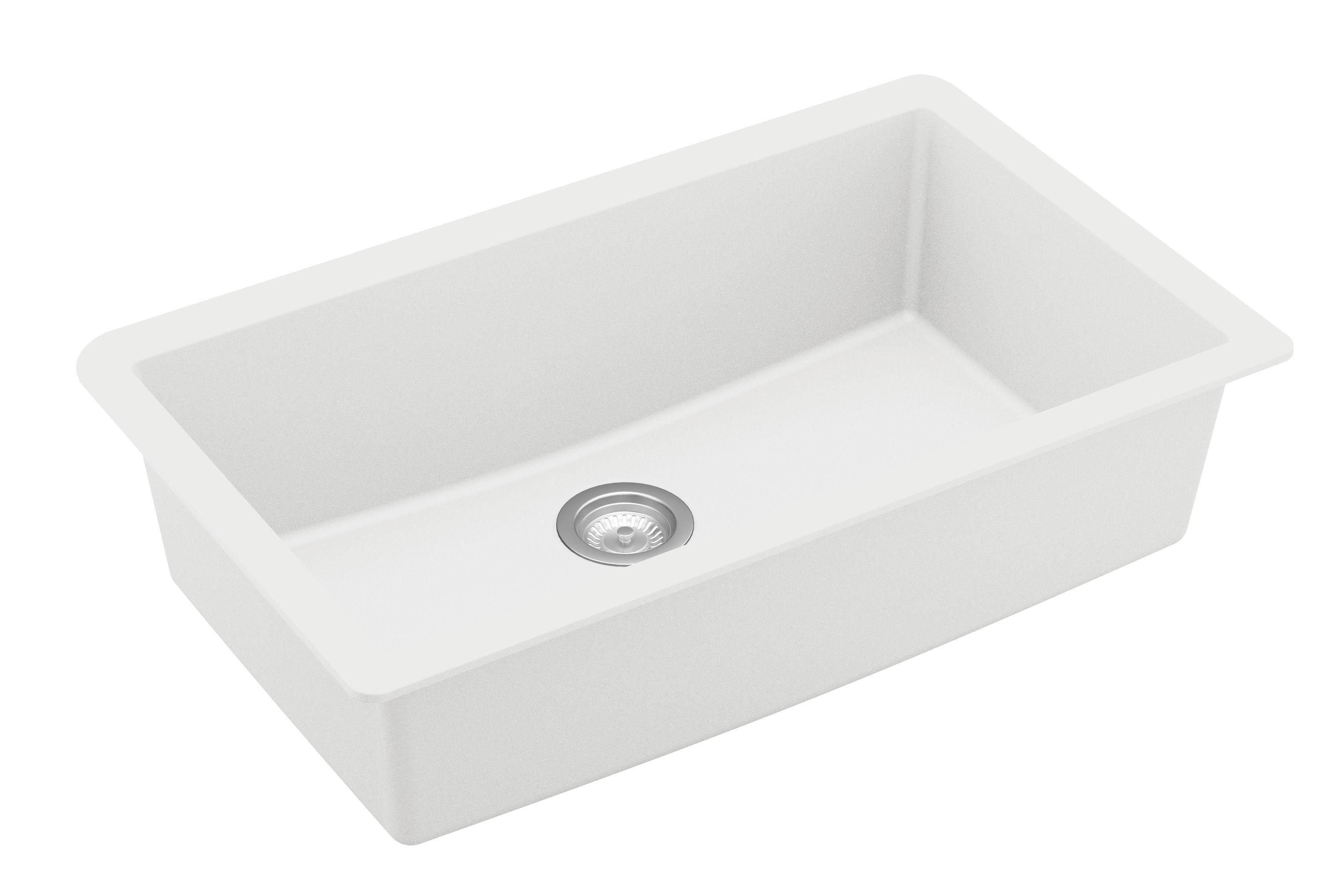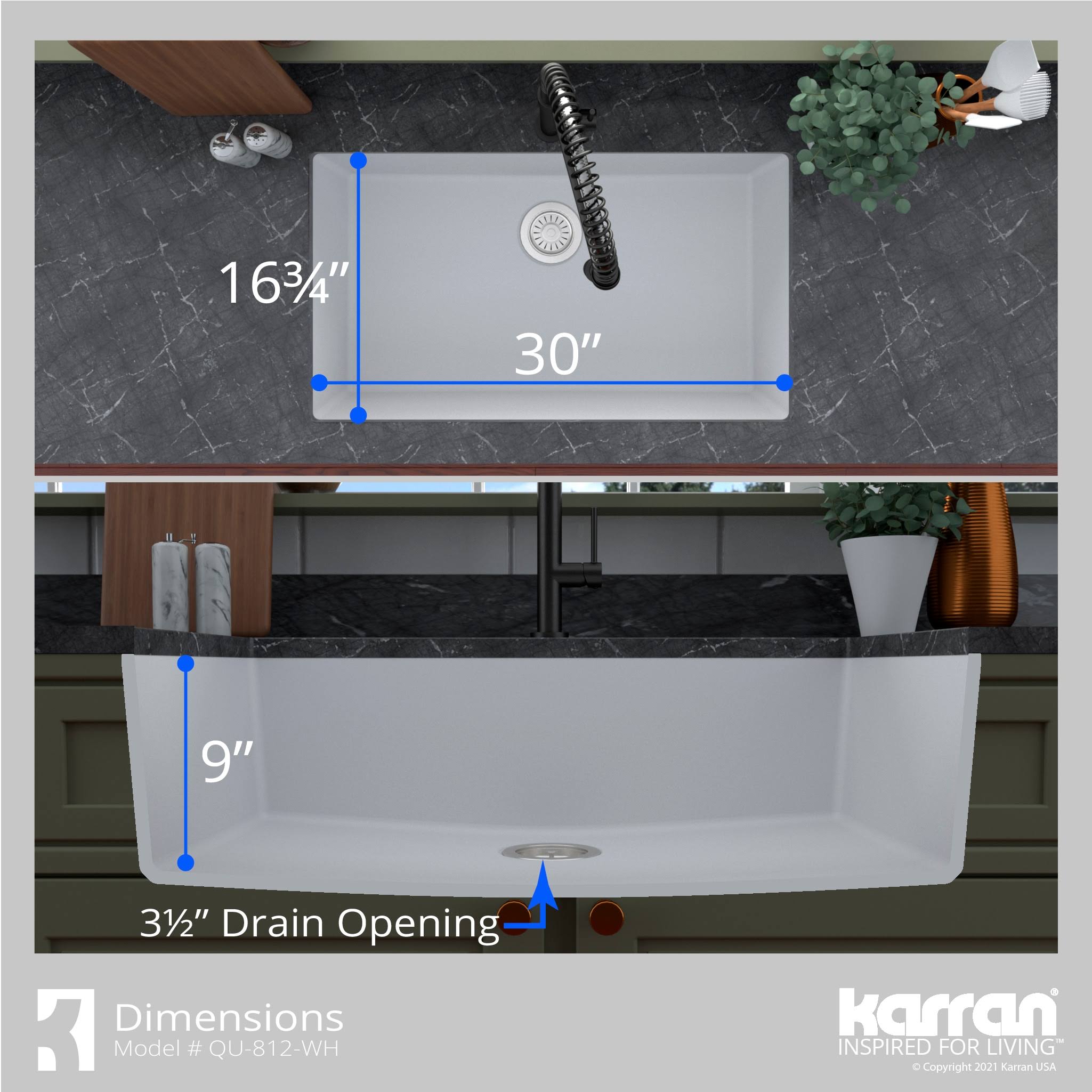Karran QU-812 Undermount 32.5 in. Large Single Bowl Quartz Kitchen Sink in White