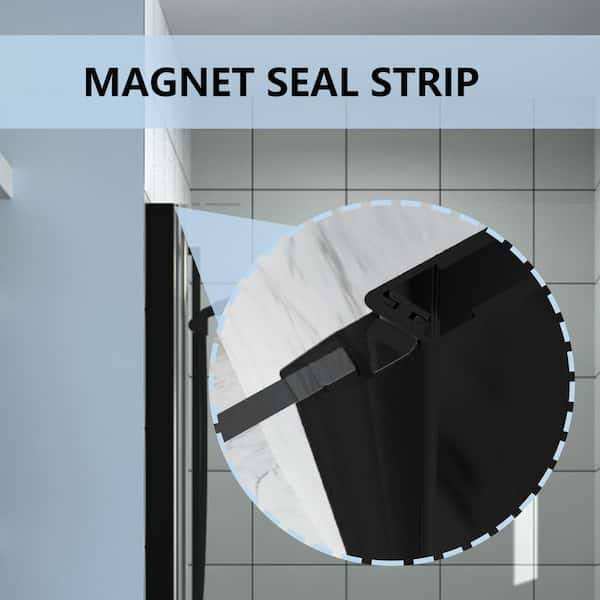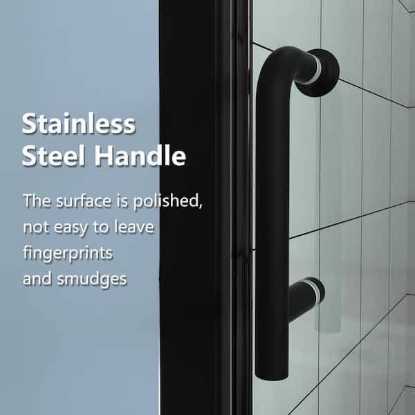 ES-DIY 34-35 in. W x 72 in. H Fold Pivot Frameless Swing Corner Shower Panel with Shower Door in Black with Clear Glass