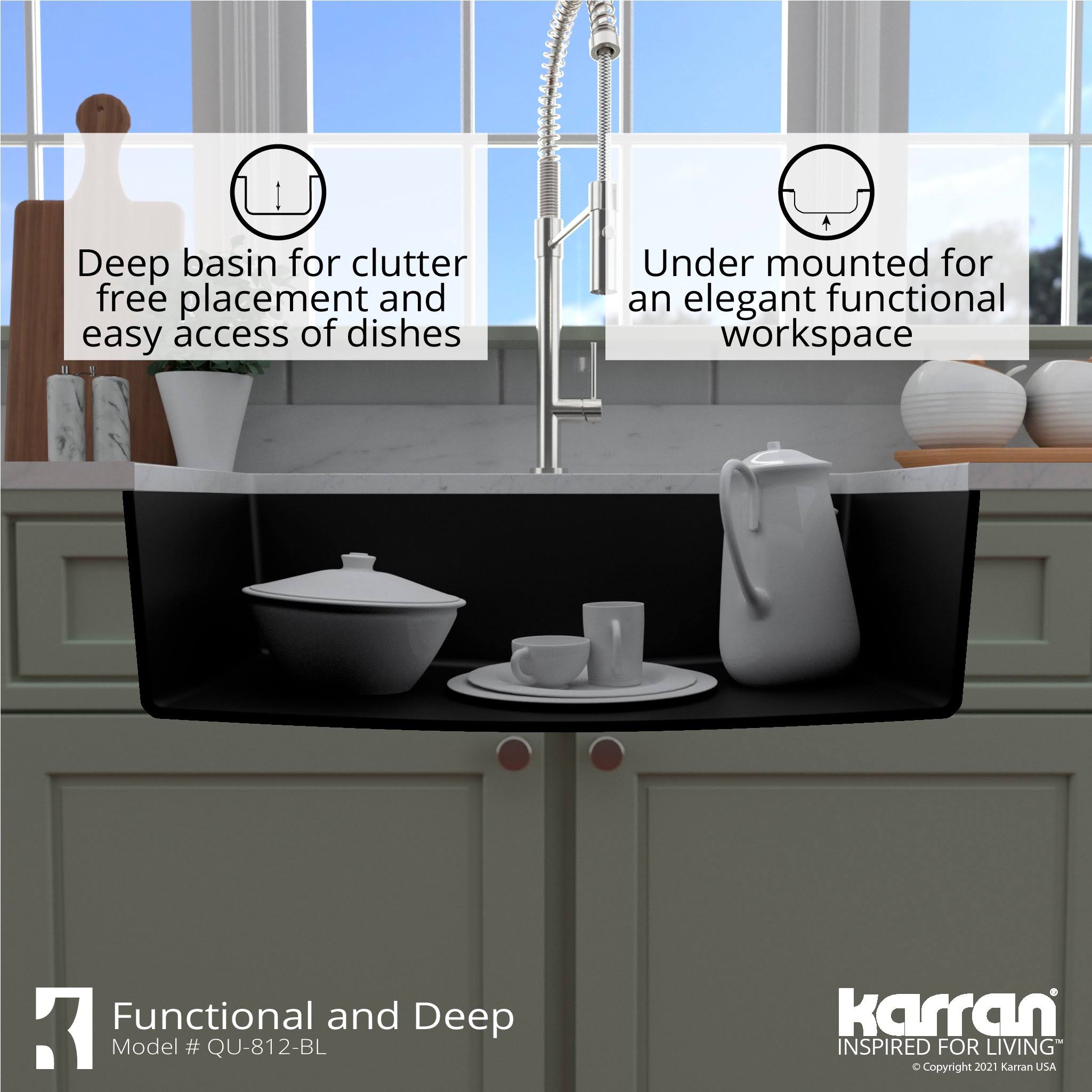 Karran Undermount 32.5 in. Large Single Bowl Quartz Kitchen Sink- Black QU-812