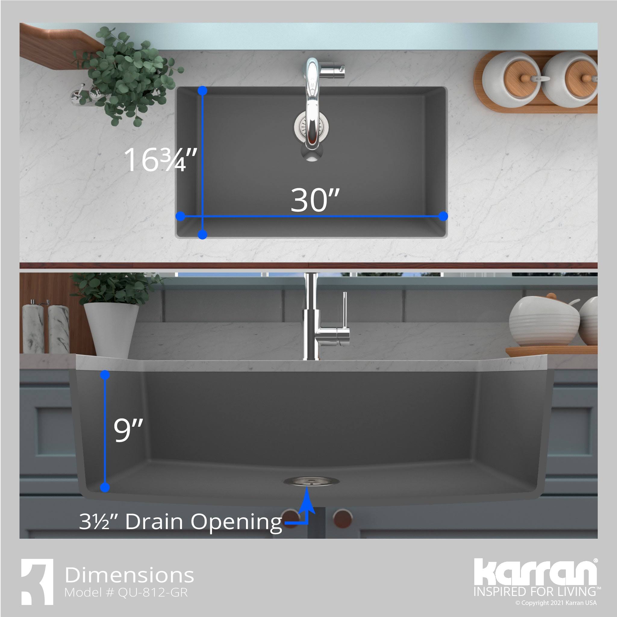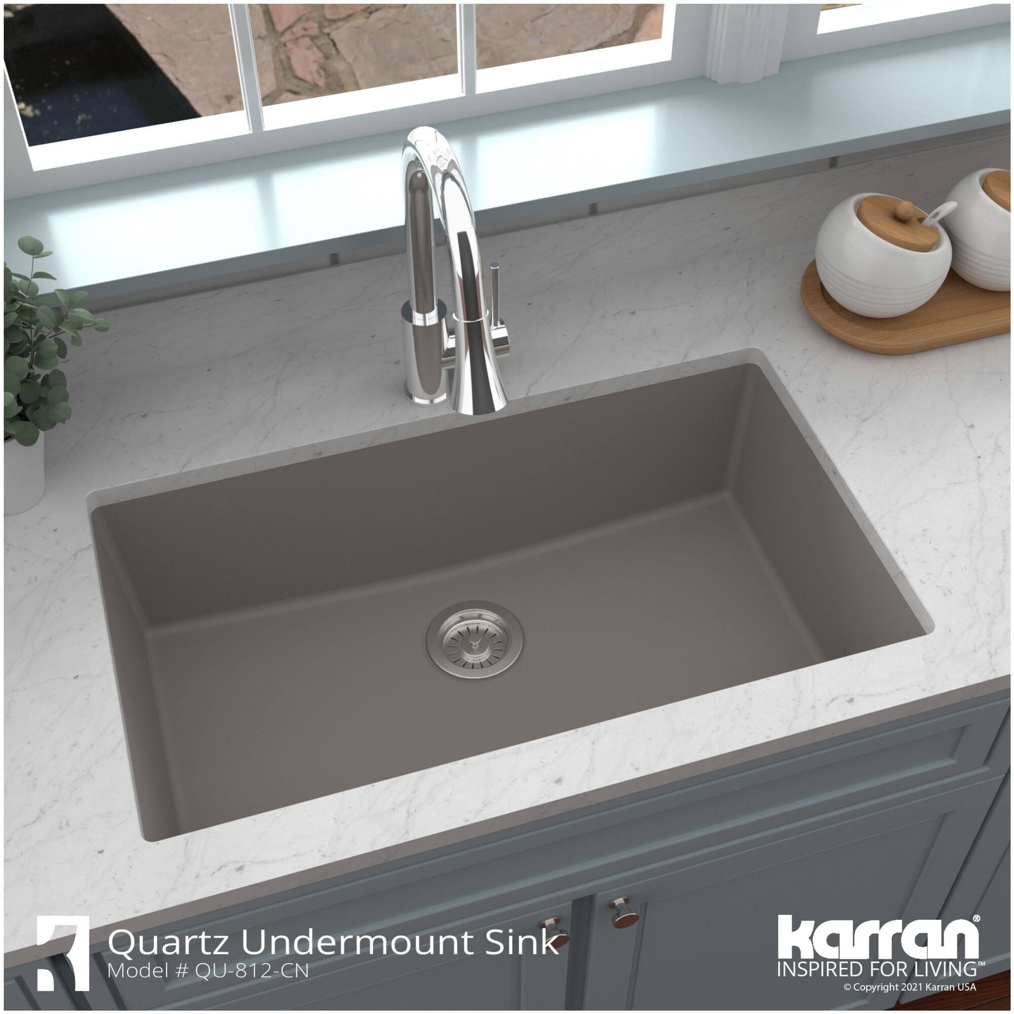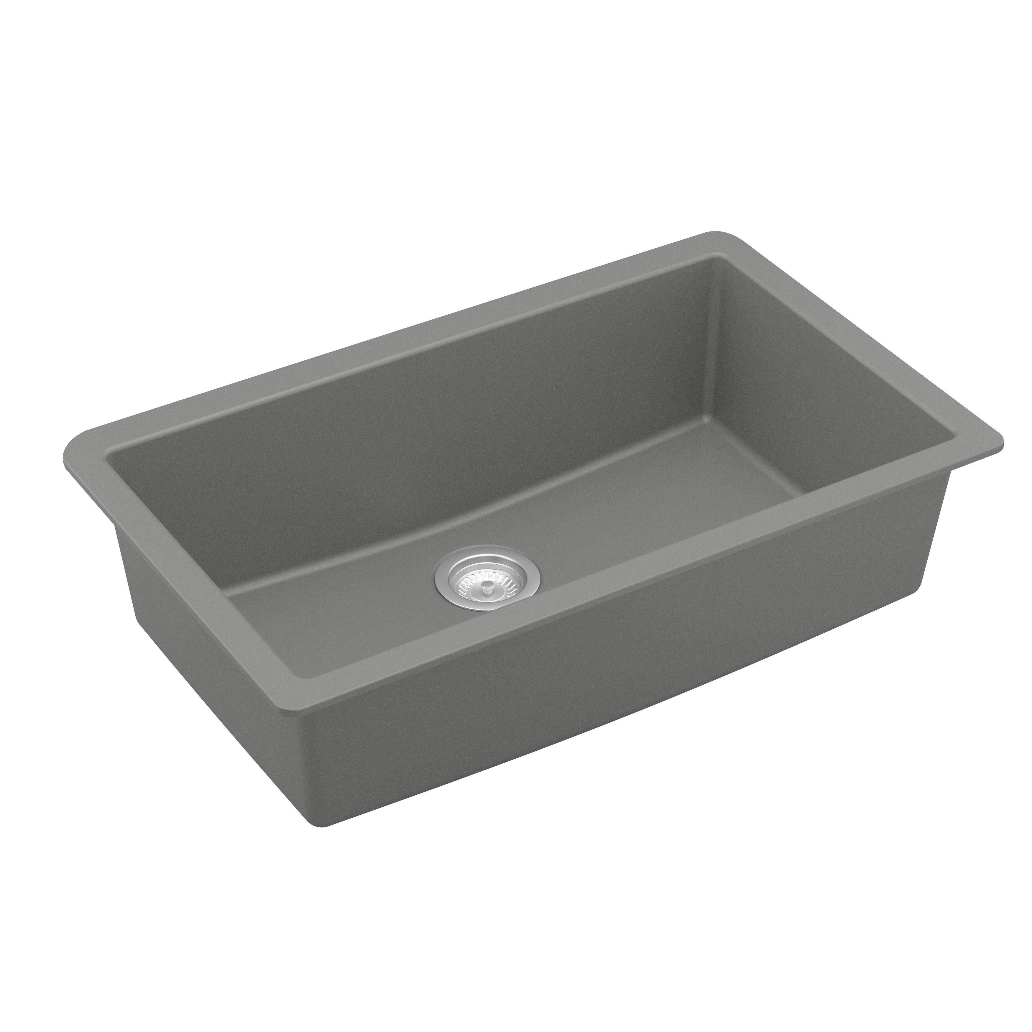 Karran Grey Quartz 32.5 in. Large Single Bowl Undermount Kitchen Sink