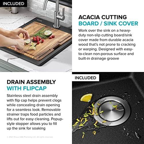 Kraus Kguw1-30wh Bellucci Workstation 30 inch Undermount Granite Composite Single Bowl Kitchen Sink White